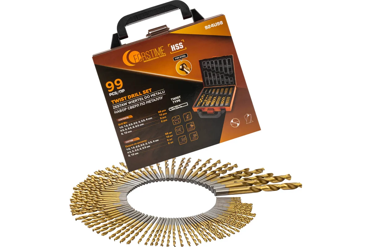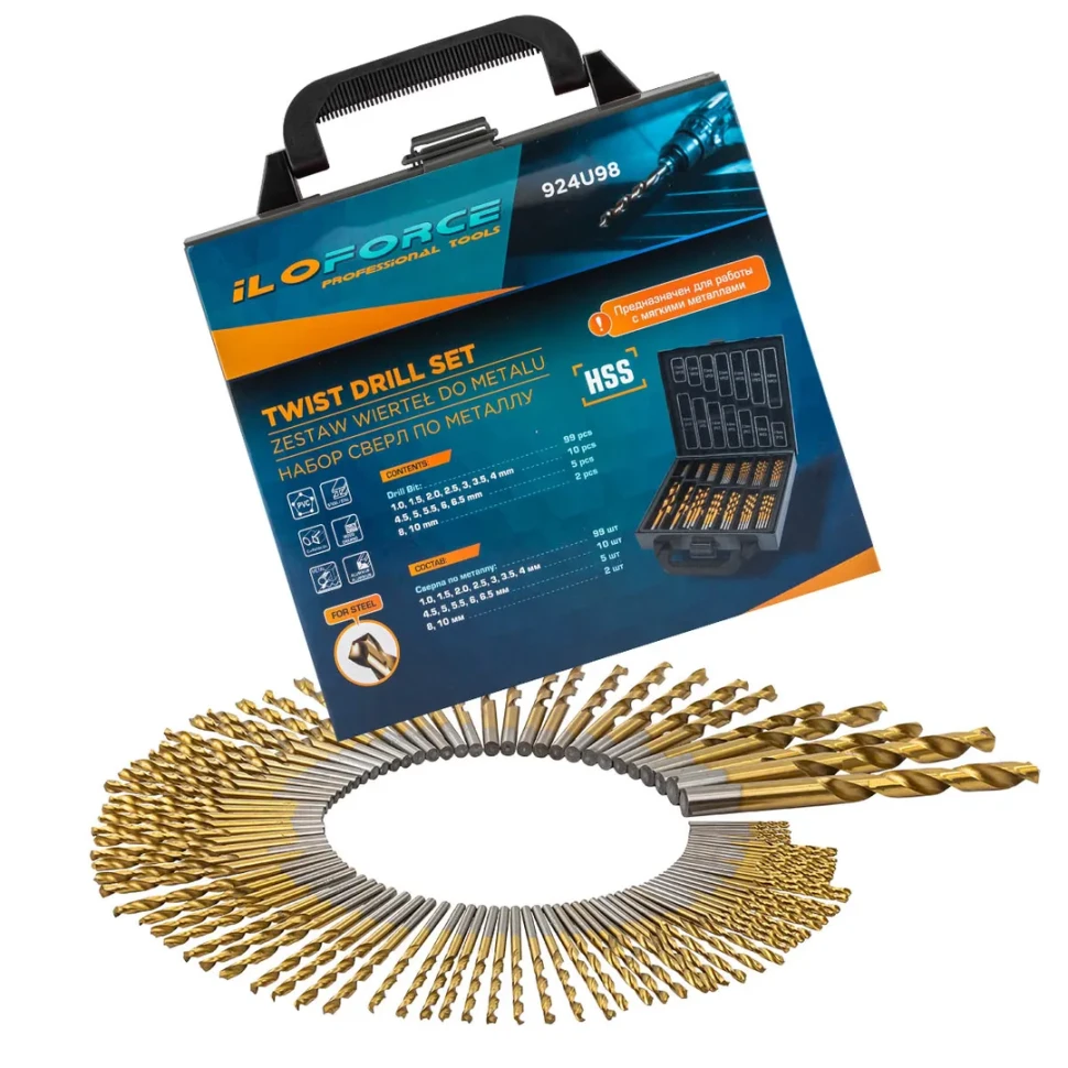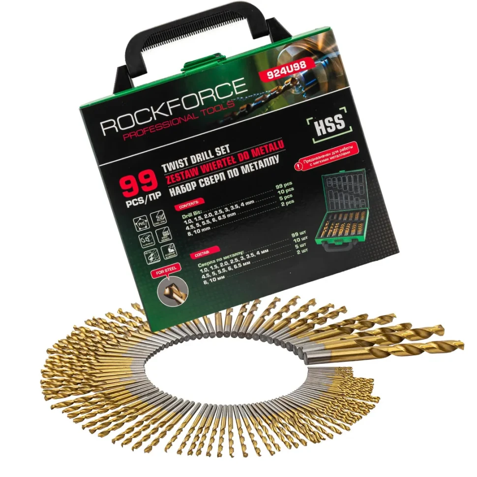 Комплектация (диаметр сверла, мм): 1.0-10.0мм (1.0; 1.5; 2.0; 2.5; 3.0; 3.5; 4.0; 4.5; 5.0; 5.5; 6.0; 6.5; 7.0; 7.5; 8.0; 8.5; 9.0; 9.5; 10.0; 10.5; 11.0; 11.5; 12.0; 12.5; 13.0);