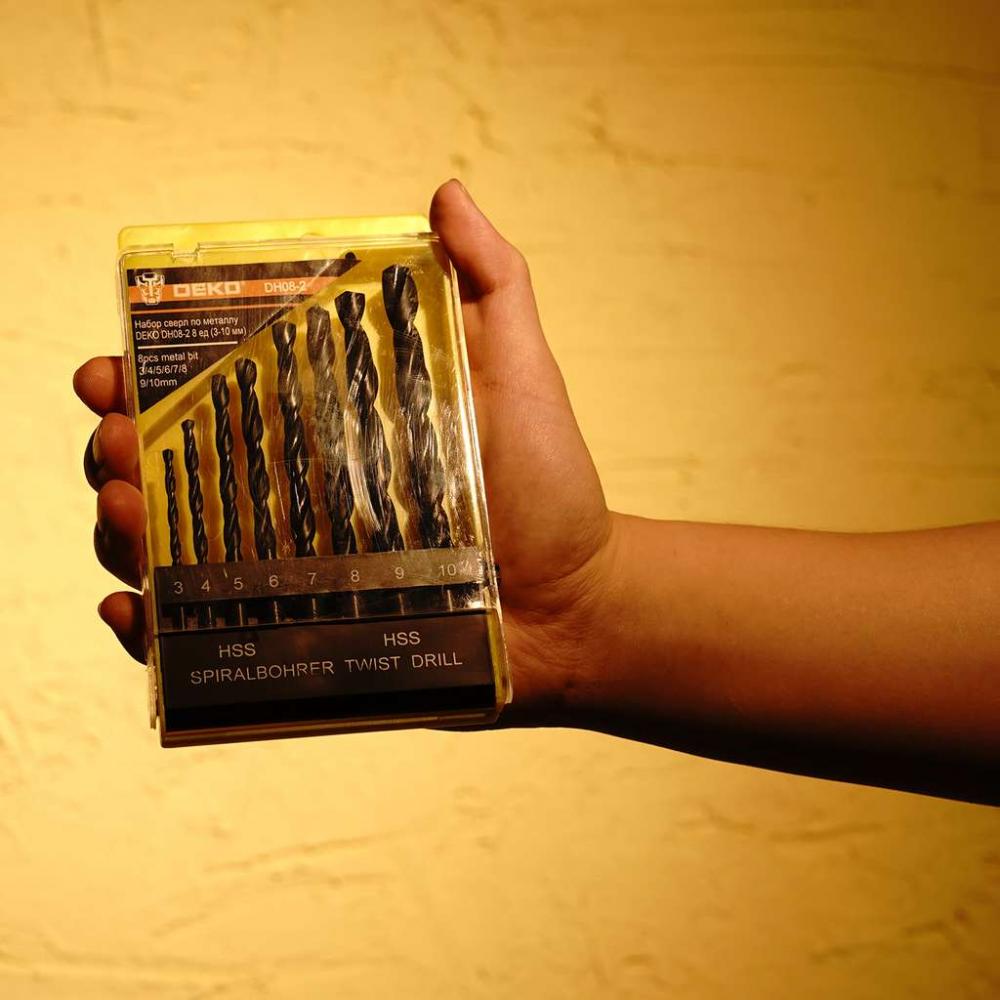 - 8 сверл диаметром 3, 4, 5, 6, 7, 8, 9, 10мм.