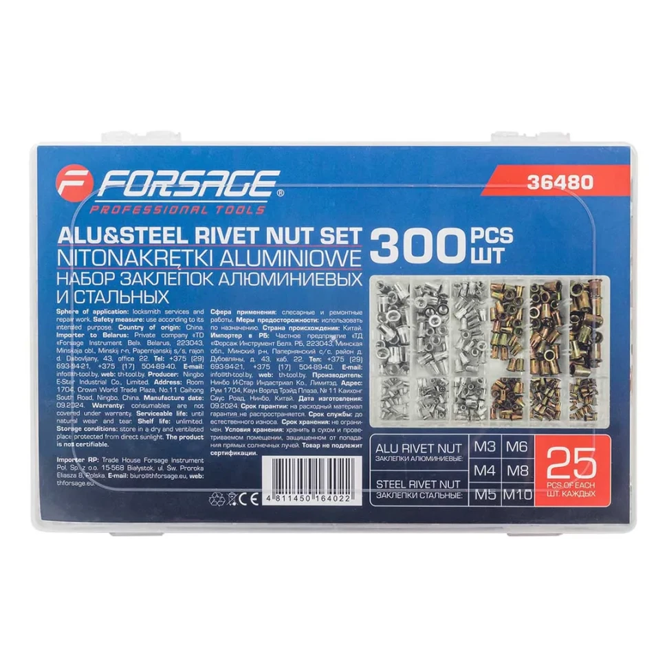 Набор заклепок алюминиевых и стальных 300шт. Forsage F-36480