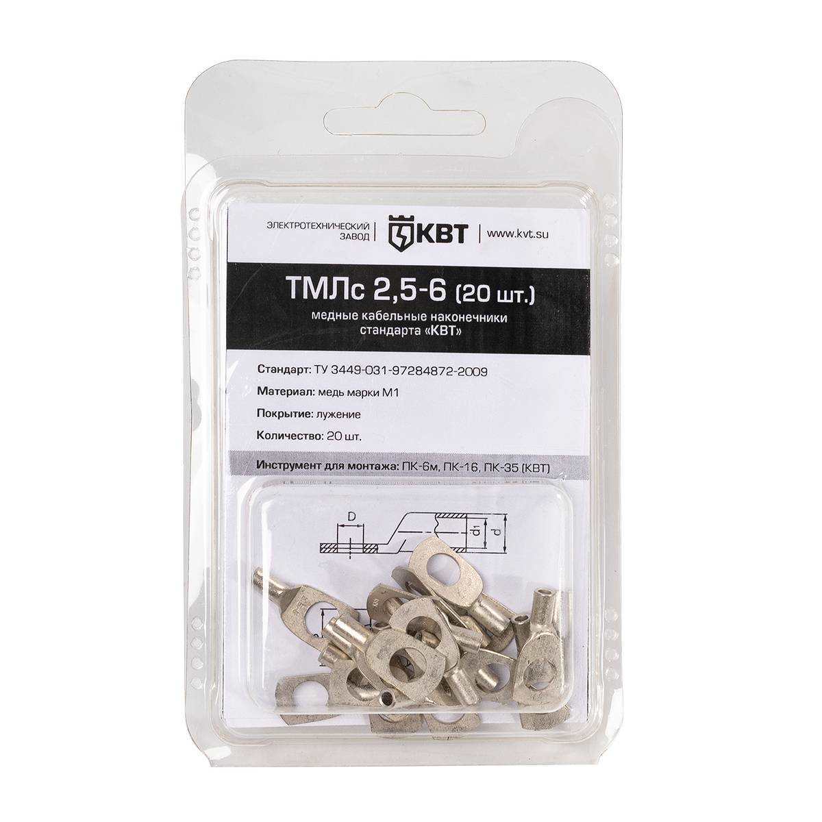 Наконечник кабельный ТМЛс 2.5–6 (20 шт) КВТ 78769