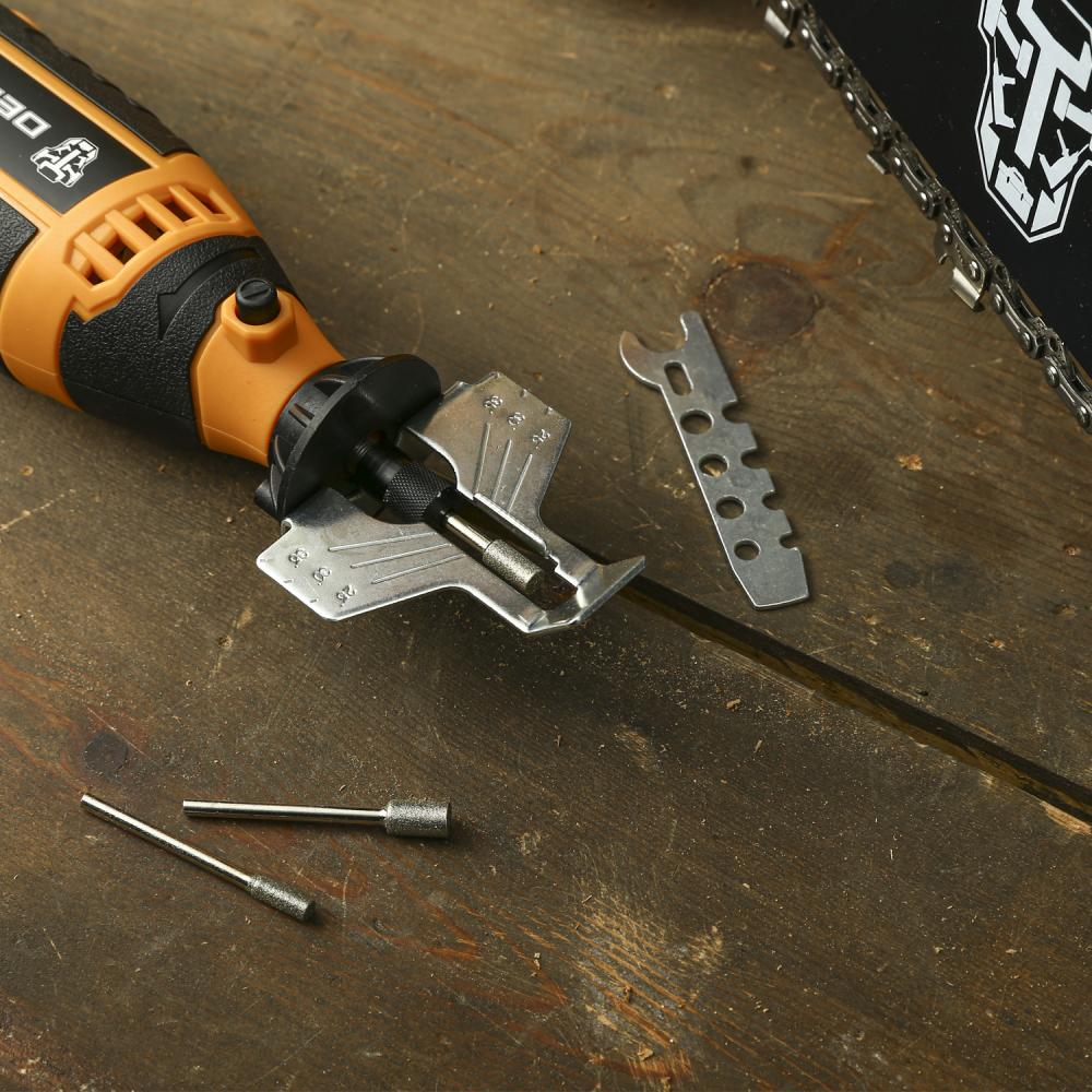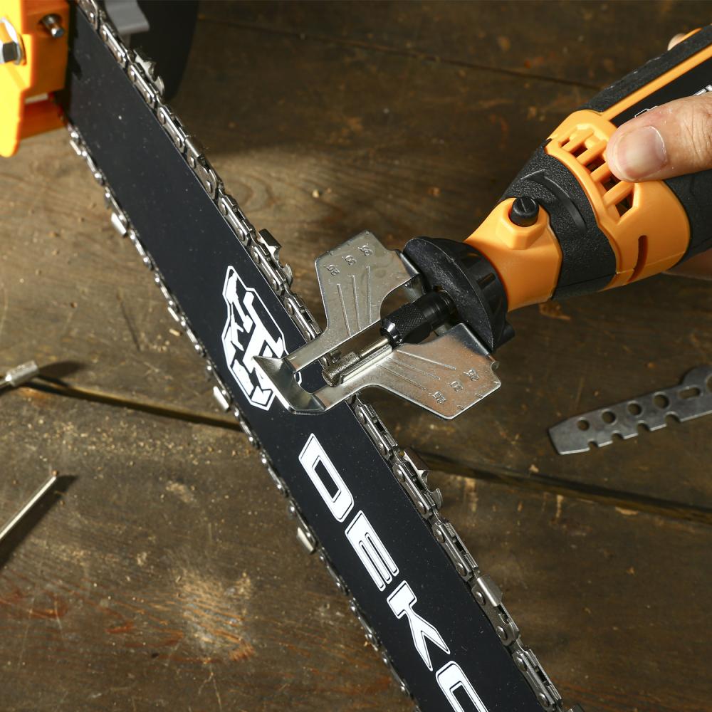 - Насадка на гравер для заточки пил DEKO CSS02 позволяет быстро и качественно заточить цепь без её снятия.