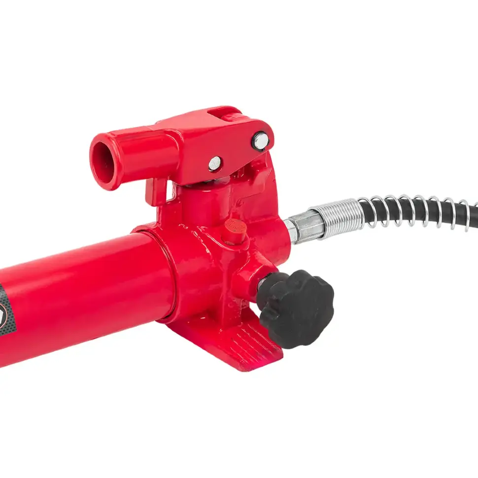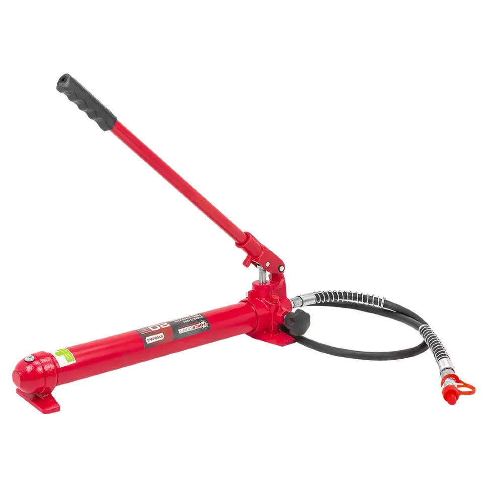 Ручной гидравлический насос применяется для работ с гидравлическими цилиндрами прямого и обратного действия в гидравлических гаражных прессах и кранах, стяжках пружин подвески автомобилей, наборах гидравлических растяжек для кузовного ремонта. Длинная рукоятка с эргономичным обрезиненным местом хвата. Соединение шланга закрыто защитным колпаком, надежный спускной винт из металла. В комплект входит только сам насос и шланг 1,3 м.