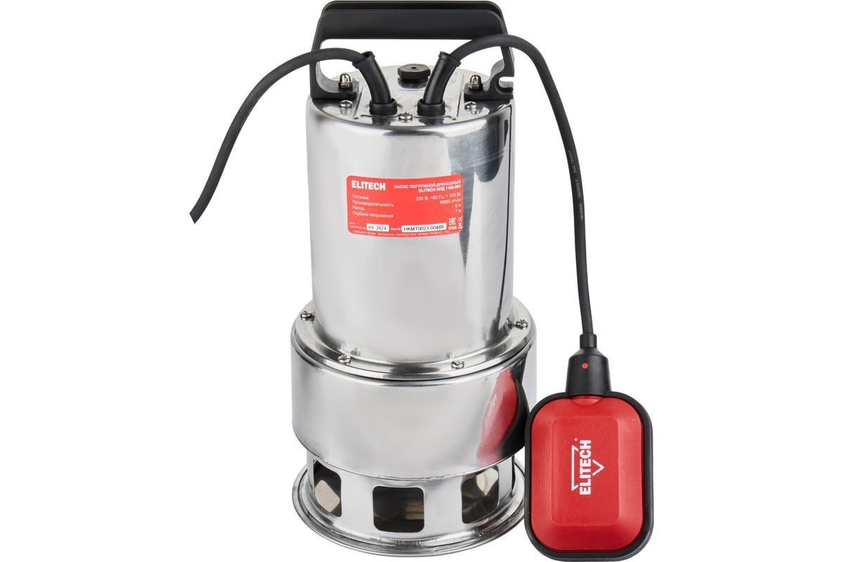 Погружной дренажный насос «ELITECH» мощностью 1100 Вт и производительностью 16 000 л/час предназначен для перекачивания загрязненной воды с диаметром твердых частиц не более 35 мм из колодцев, открытых водоемов, затапливаемых подвалов и других источников.