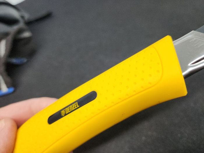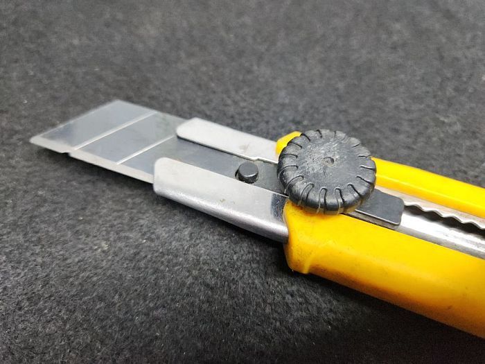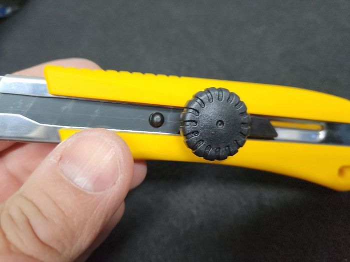 Достоинства: Отличное качество, крепкий, отсутствие люфтов, приятный на ощуп, удобно лежит в руке. Очень удобно зажимное колёсико, чётко держит лезвие.