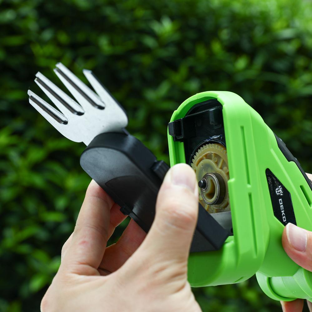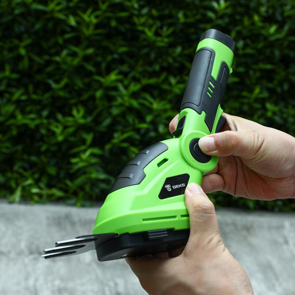 - Ножницы садовые аккумуляторные DEKO DKGS7.2 - многофункциональный инструмент с 2 насадками, используемый для финишной обработки газона и ухода за кустами.