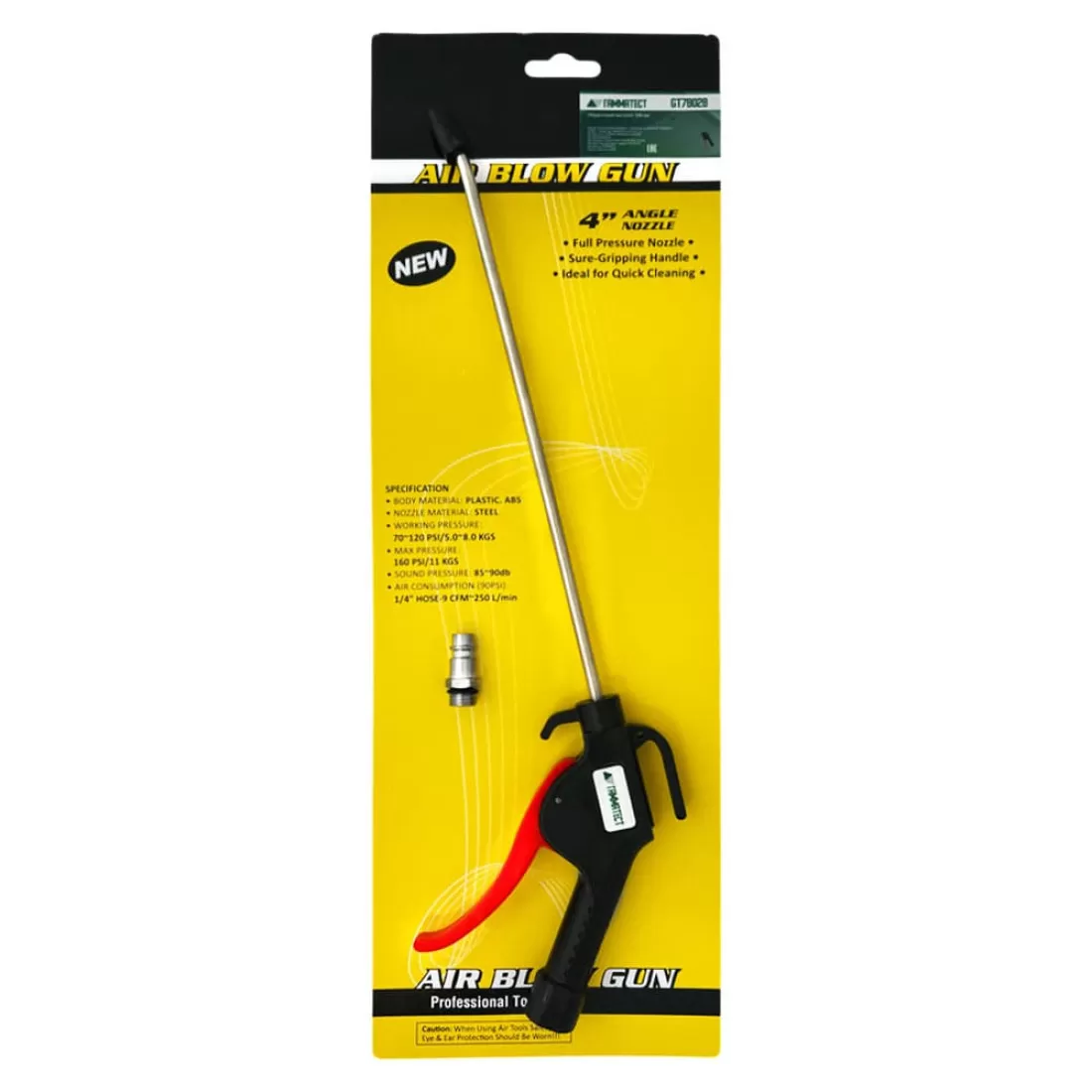 Обдувочный пистолет ГАММАТЕСТ GT7B028 — пневматический обдувочный пистолет с удлинённым соплом 300 мм для эффективной очистки труднодоступных мест, внутренних полостей и крупных поверхностей от пыли, стружки и мусора в мастерской, на производстве и в автосервисе.