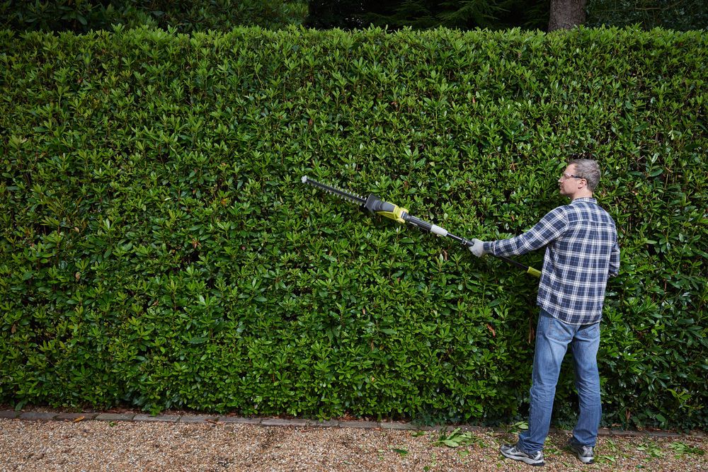 Аккумуляторный высотный кусторез RYOBI OPT1845, 18 В, лезвия 45 см.