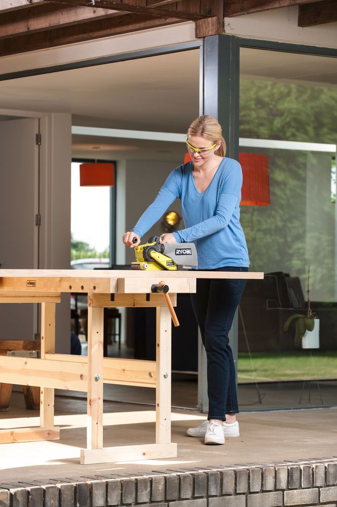 - Бесключевая регулировка положения шлифленты делает работу с инструментом более комфортной.
