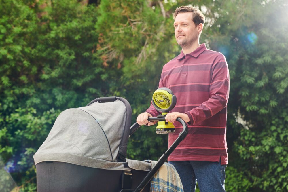 - Переносной аккумуляторный вентилятор для использования как внутри, так и снаружи помещения.