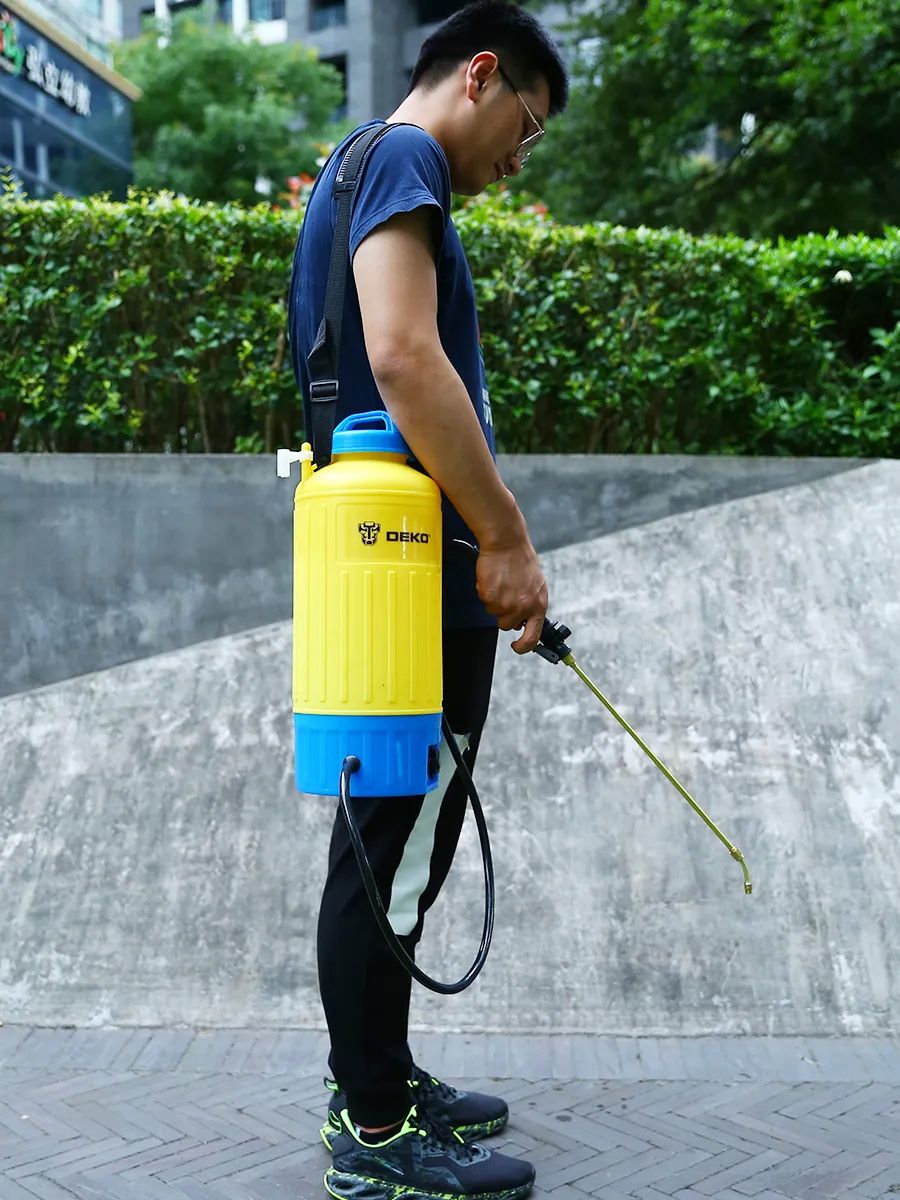 - Опрыскиватель садовый аккумуляторный DEKO DKSP11 используется для распыления воды и удобрений, дезинфекции, дезинсекции, мытья окон, машин и стен, защиты растений от вредителей.