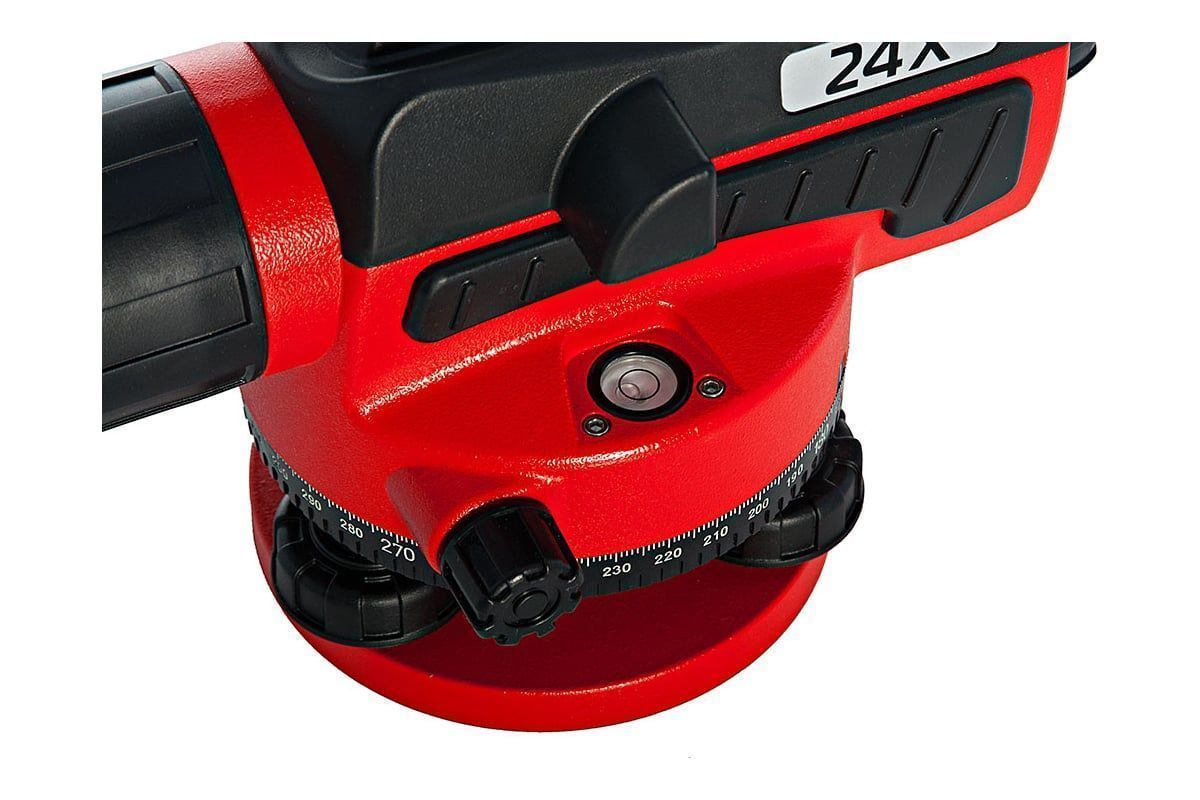 Нивелир обладает 24-кратным увеличением зрительной трубы с просветленной оптикой, что значительно улучшает видимость и облегчает наведение на удаленные объекты.