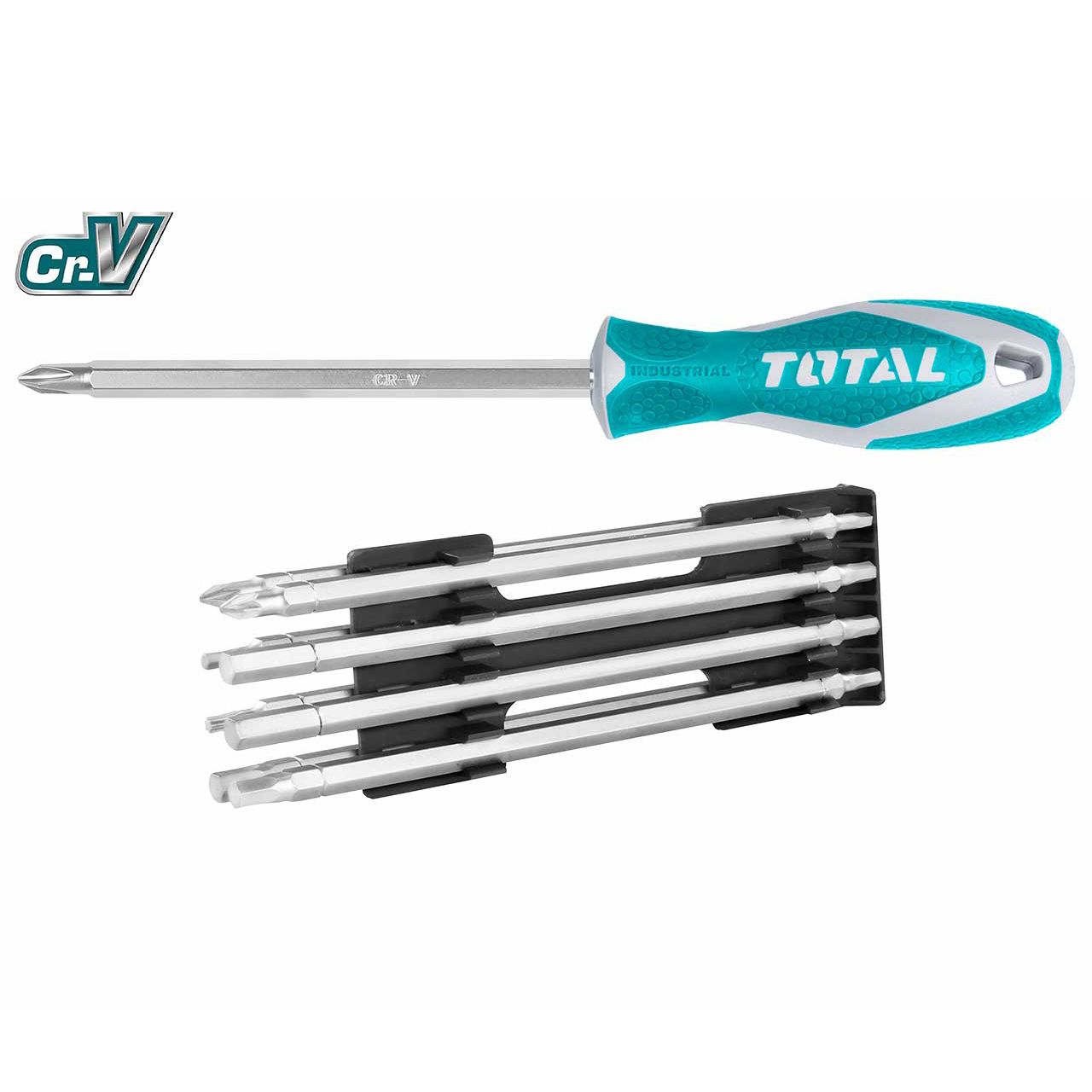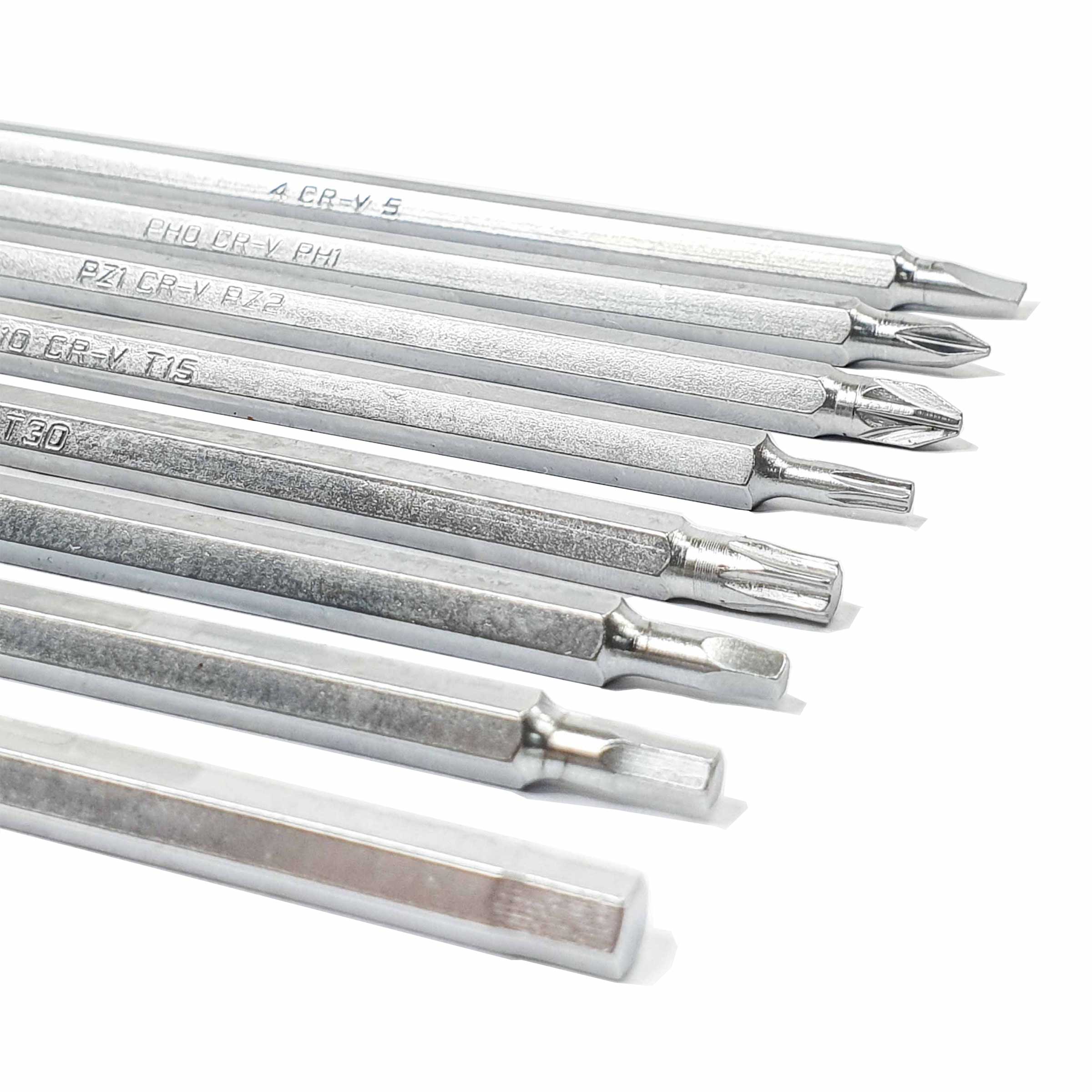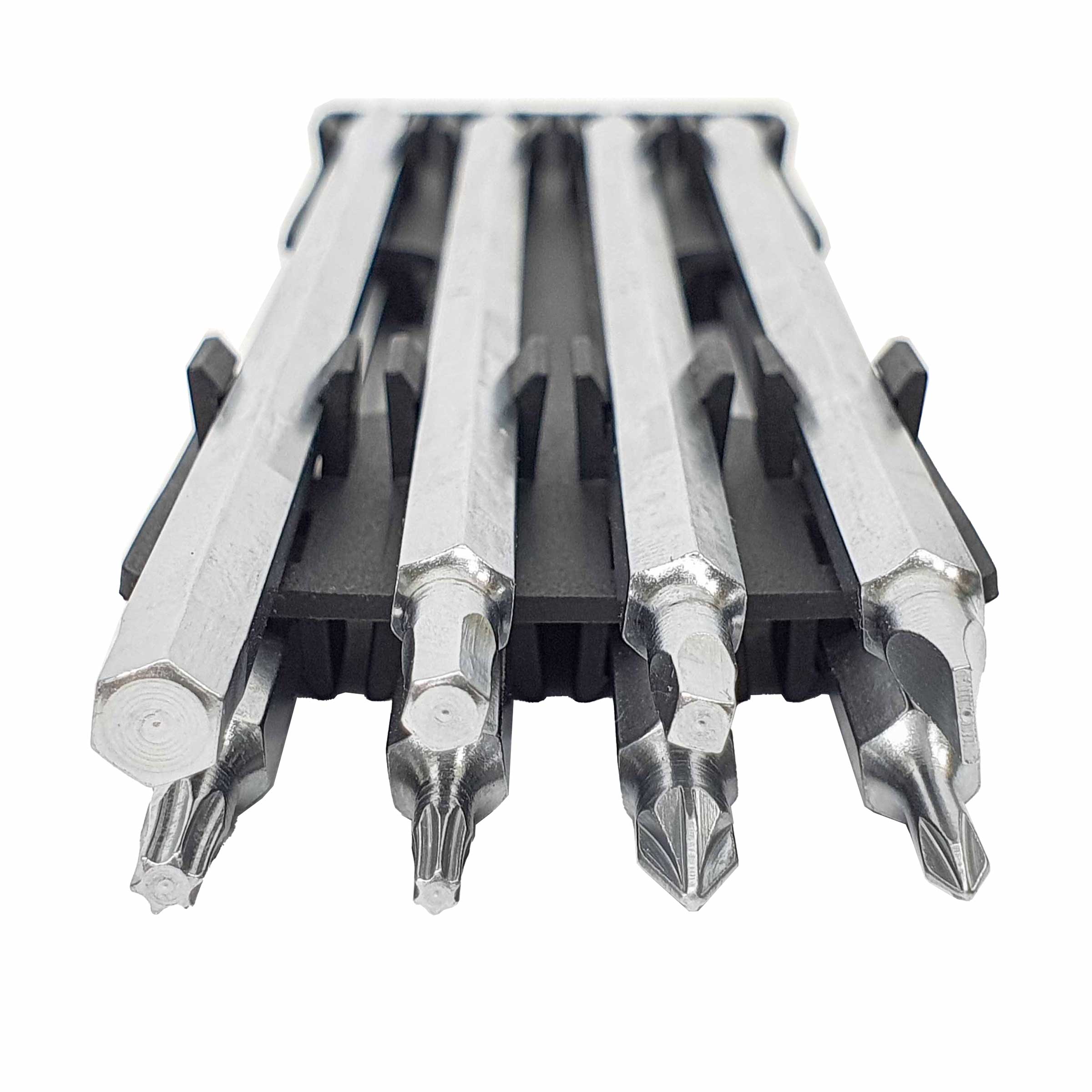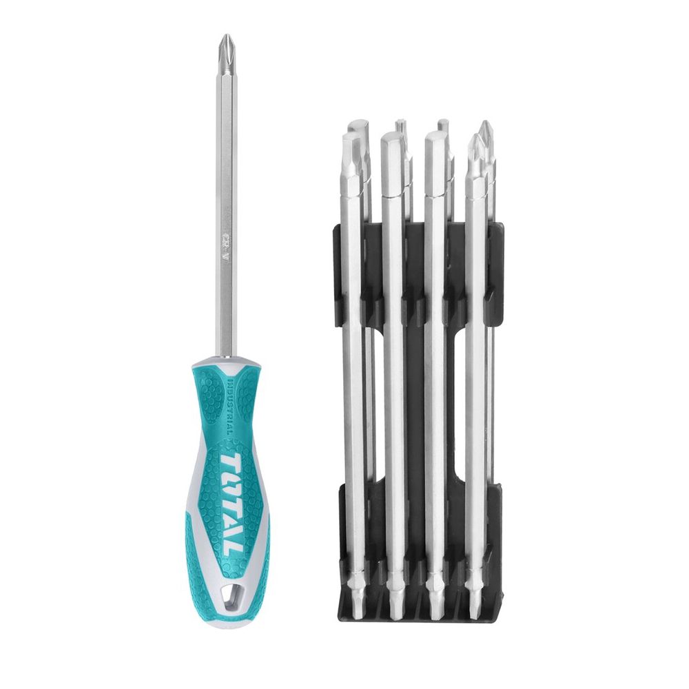 - Профессиональная отвертка с девятью 2-х сторонними удлиненными стержнями их хром-ванадиевой стали с никелированным покрытием для защиты от ржавчины.