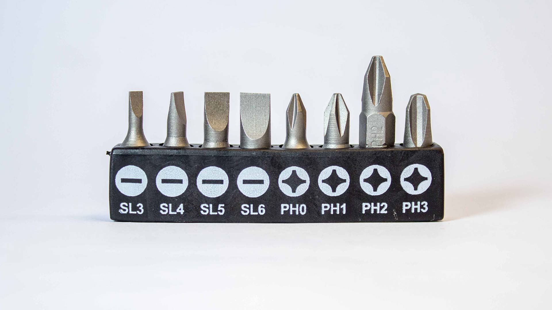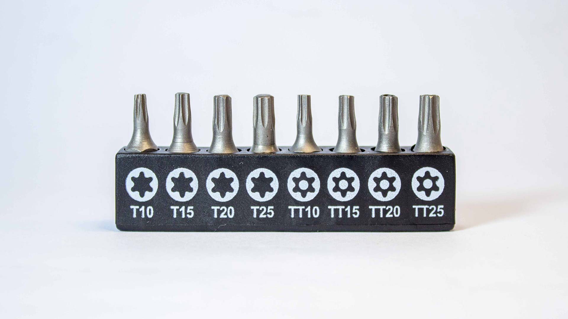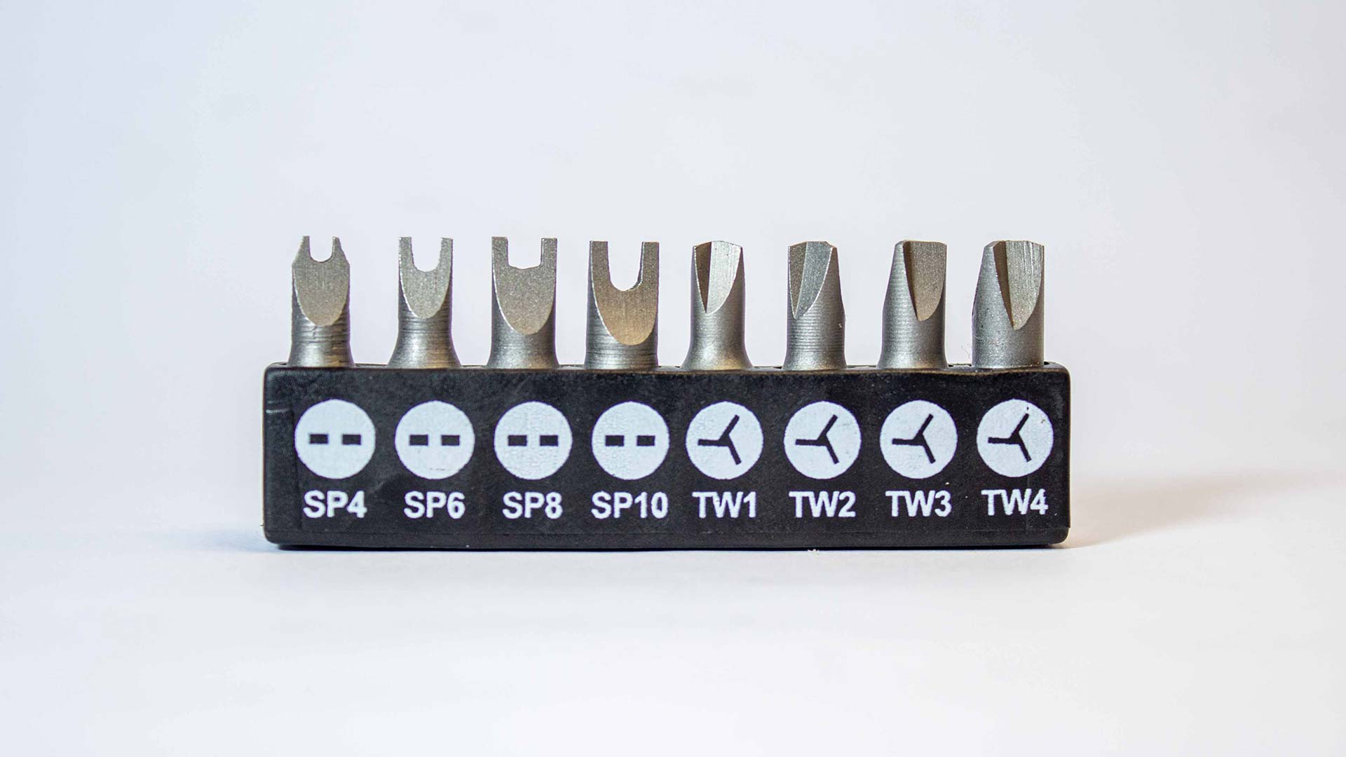 - Инструмент упакован в пластиковом кейсе, в комплекте идут 40 бит.