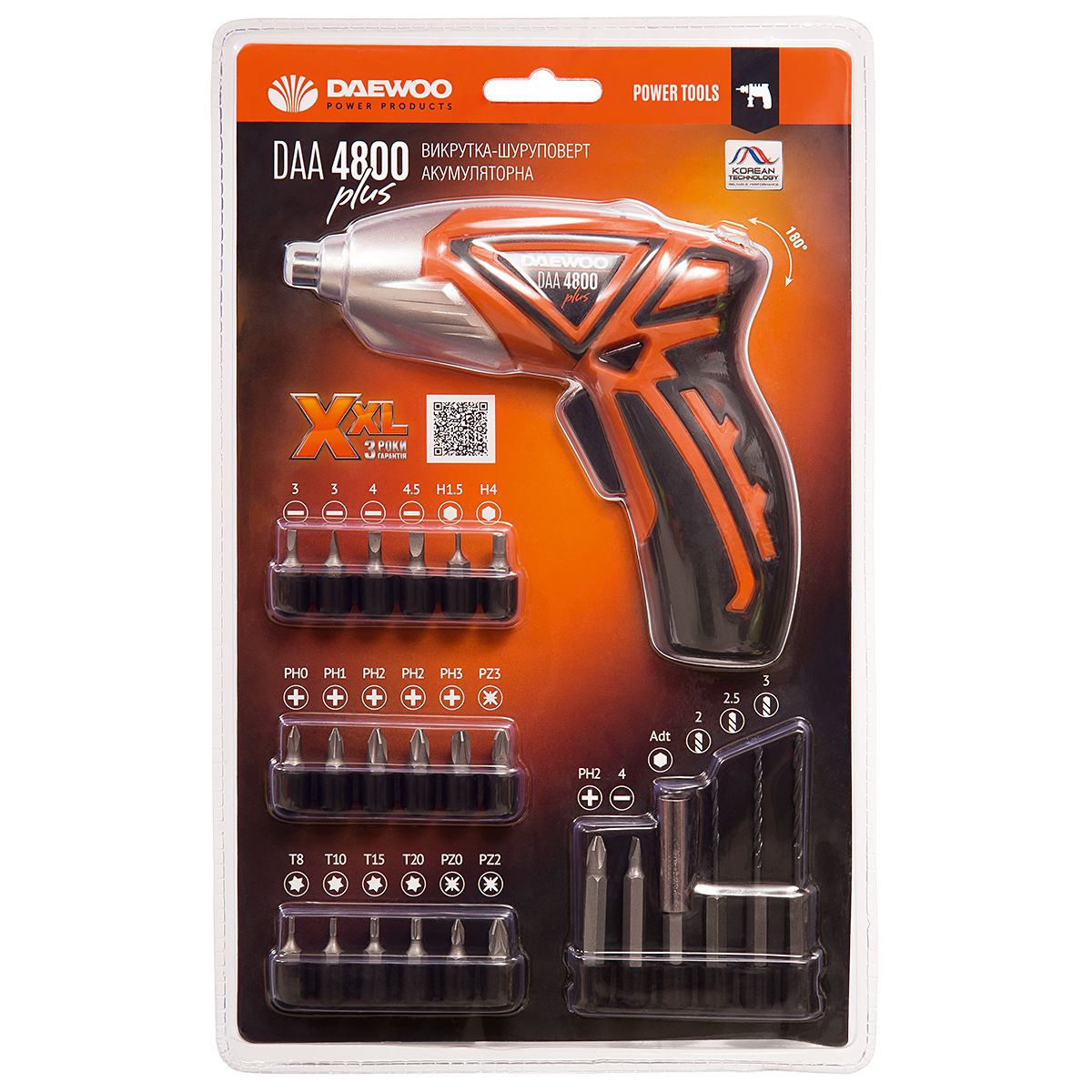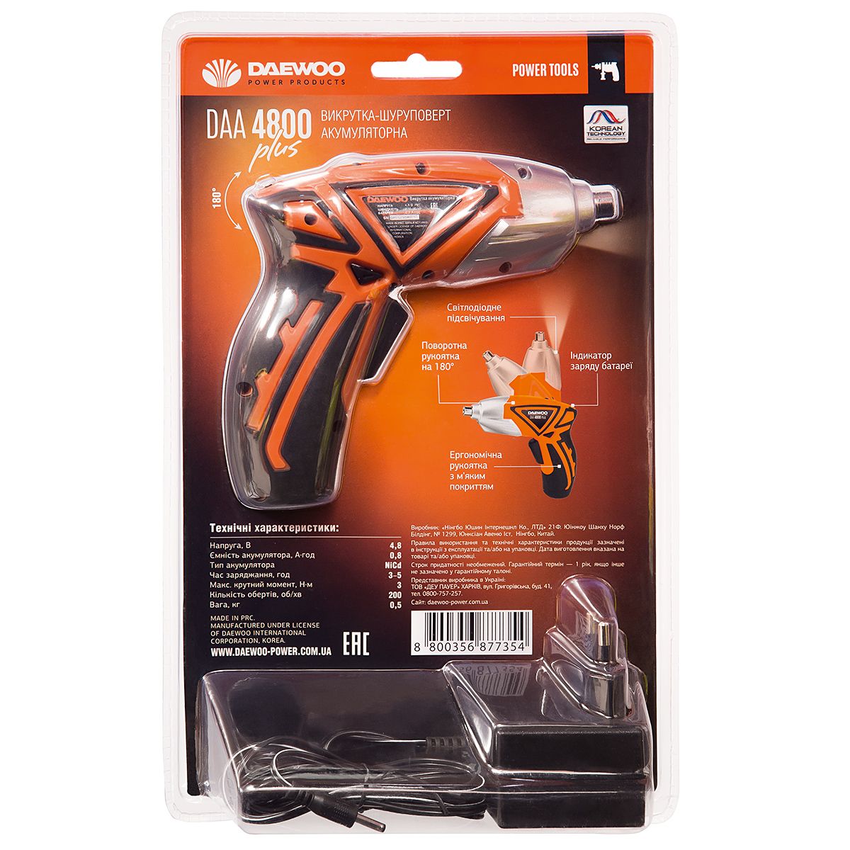 Отвертка аккумуляторная, 4.8В, 1АКБ 0,8 А/ч NiCd, 0-180 об/мин, 3Нм, поворотная рукоятка DAEWOO DAA 4800 Plus