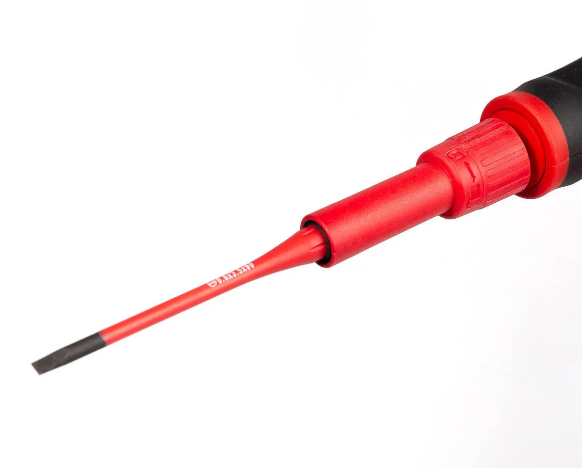- Утопленная в лезвие отвертки СЛИМ изоляция делает возможным монтаж винтов с глубокой посадкой