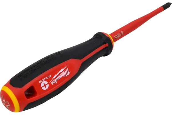 Диэлектрическая отвертка Сибртех 12934 до 1000 В, PH0 x 75 мм, из стали CrV, с двухкомпонентной рукояткой, предназначена для работы с крепежом типа Phillips «крест». Благодаря диэлектрическому покрытию она пригодится частным мастерам при замене розеток, подключении электросчетчиков и других работах. Стержня длиной 75 мм достаточно для демонтажа/монтажа крепежа в углублениях. Внимание — техника безопасности запрещает выполнять работы под напряжением!