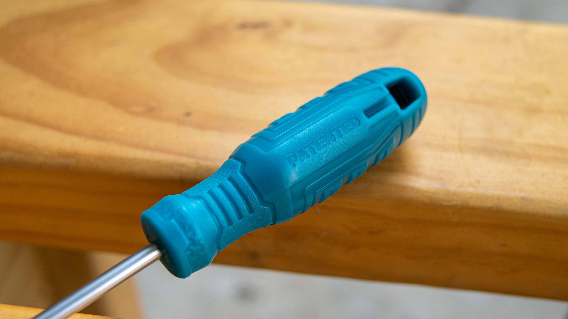 - Отвертка состоит из хромванадиевого стержня, отличающегося повышенной прочностью, и эргономичной рукоятки из противоскользящего материала.