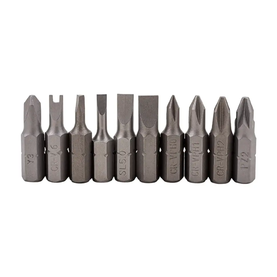 Набор бит: включает самые востребованные типы — крестовые (PH), плоские (SL), шестигранные (HEX), торцевые (TORX)