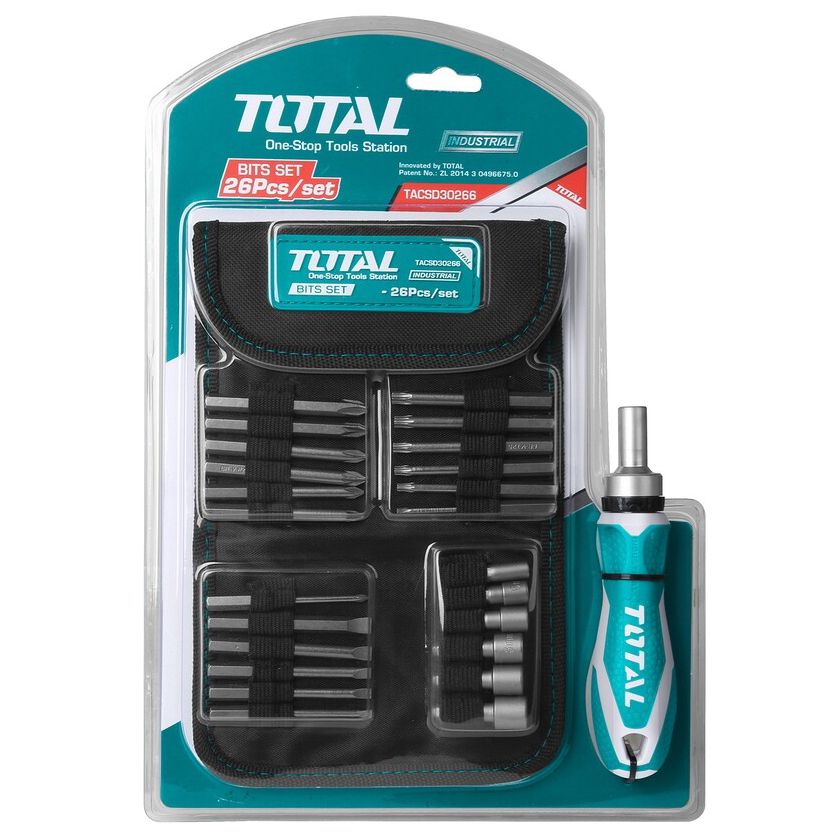 Отвертка реверсивная с набором TOTAL TACSD30266 (26 предметов)