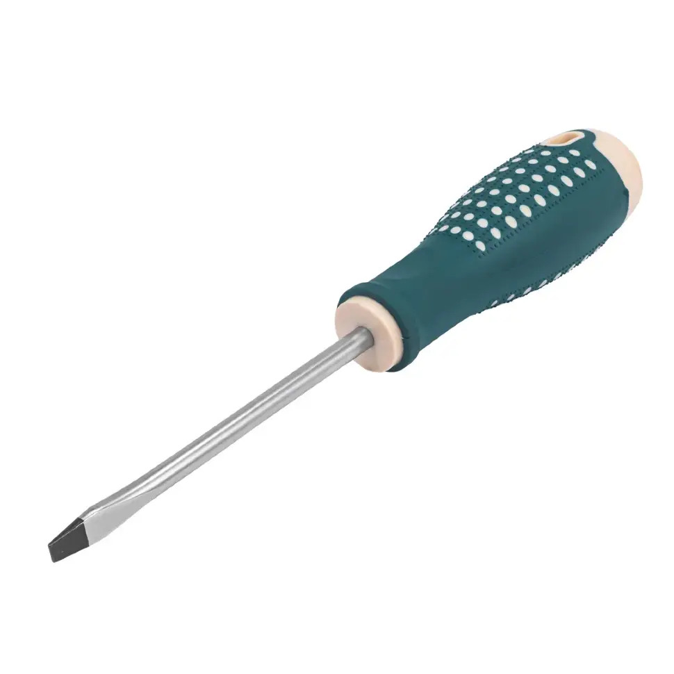 Отвёртка шлицевая RockFORCE LIGHT RF LIGHT‑70165100 с жалом SL 6.5 и длиной стержня 100 мм предназначена для работы с крепежом с прямым шлицем. Оптимальная длина позволяет сочетать удобство доступа в ограниченные пространства с достаточным рычагом для приложения усилия. Жало выполнено из прочной инструментальной стали S2, устойчивой к износу и деформации, а магнитный наконечник надёжно удерживает крепёж. Эргономичная двухкомпонентная рукоятка с прорезиненными вставками обеспечивает комфортный хват и контроль при работе.
