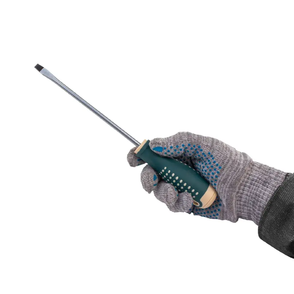 Отвёртка шлицевая RockFORCE LIGHT RF LIGHT‑70165150 с жалом SL 6.5 и длиной стержня 150 мм предназначена для работы с крепежом с прямым шлицем, включая винты и шурупы, расположенные в углублениях или труднодоступных местах. Удлинённый стержень обеспечивает удобный доступ, а жало из прочной инструментальной стали S2 устойчиво к износу и деформации. Магнитный наконечник надёжно фиксирует крепёж, предотвращая его выпадение. Эргономичная двухкомпонентная рукоятка с прорезиненными вставками обеспечивает комфортный хват и контроль усилия.