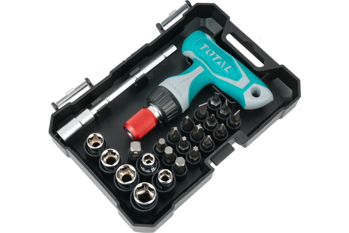 Отвертка Т-образная реверсивная с насадками TOTAL TACSD30186 (18 предметов)