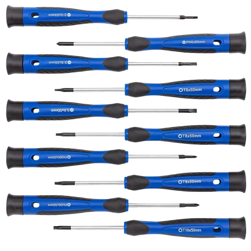 Каждая отвертка уверенно «садится» в крепёж, снижая риск срыва и царапин. Продуманная форма рукояток помогает работать аккуратно и долго, держать стабильный упор и точно дозировать усилие даже в самых маленьких винтах. Компактный формат набора экономит место и делает инструмент удобным для переноски — всё нужное под рукой, когда важна скорость и порядок.