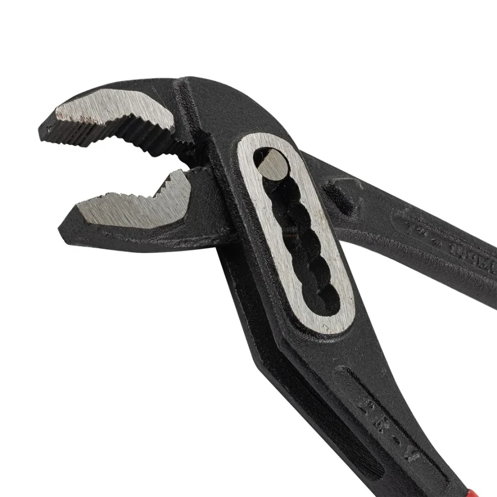 Пассатижи переставные имеют длину 175 мм. Универсальные губки позволяют захватывать предметы любой формы- круглые, квадратные, шестигранные или плоские. Эргономичная рукоятка выполнена из пластика с матовым покрытием, что повышает комфорт и минимизирует скольжение рук при использовании. Защита пальцев от защемления поможет избежать травм. Хромованадиевая сталь, из которой изготовлены пассатижи, обеспечивает прочность и долговечность, а также оптимальные режущие свойства и срок службы.