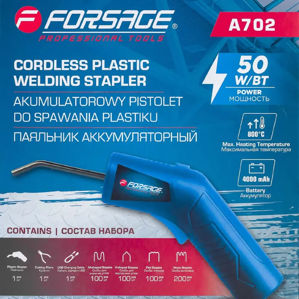 Паяльник аккумуляторный (50W, 3.7V, макс. тем-ра 800 °C) Forsage F‑A702 — портативный и мощный инструмент, предназначенный для пайки и ремонта в условиях, где нет доступа к электросети.