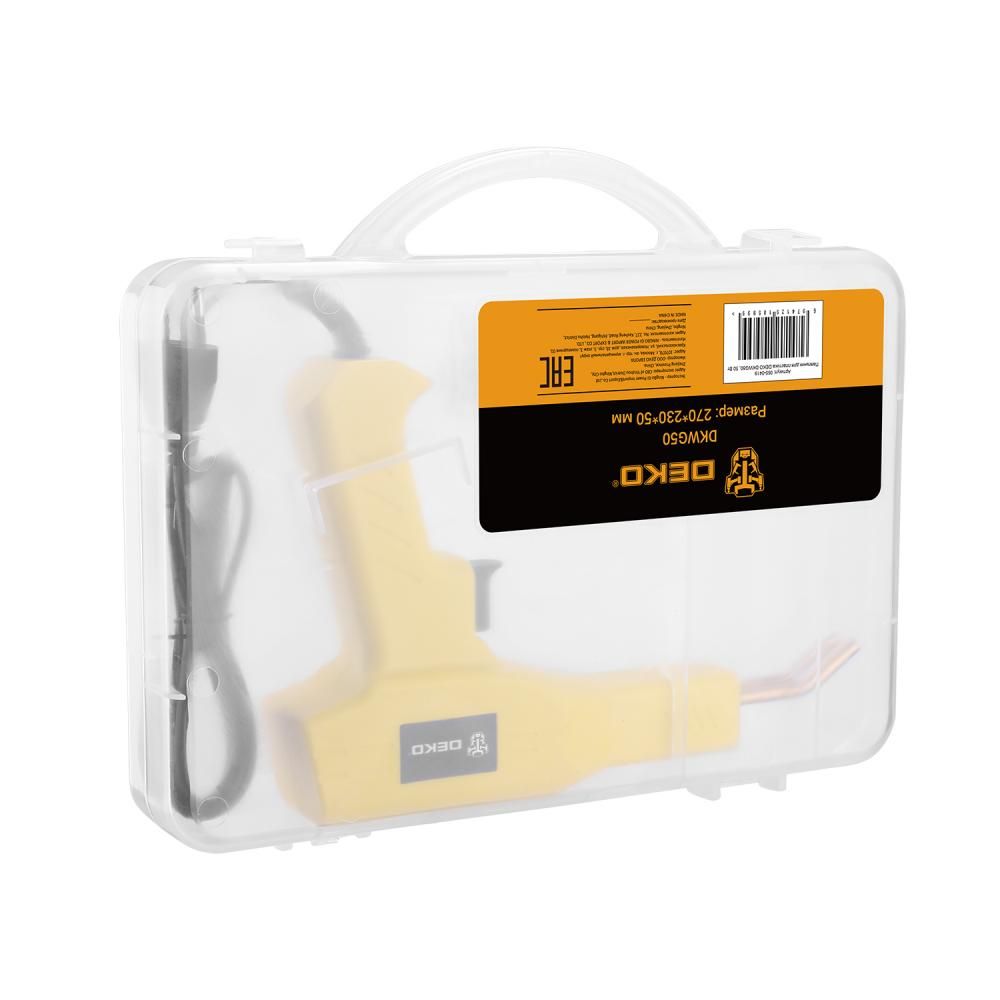 - Паяльник DEKO DKWG50 - это ручной инструмент для пайки, который предназначен для устранения трещин, разрывов, разломов, ремонта различных пластиковых деталей и других изделий из пластика.