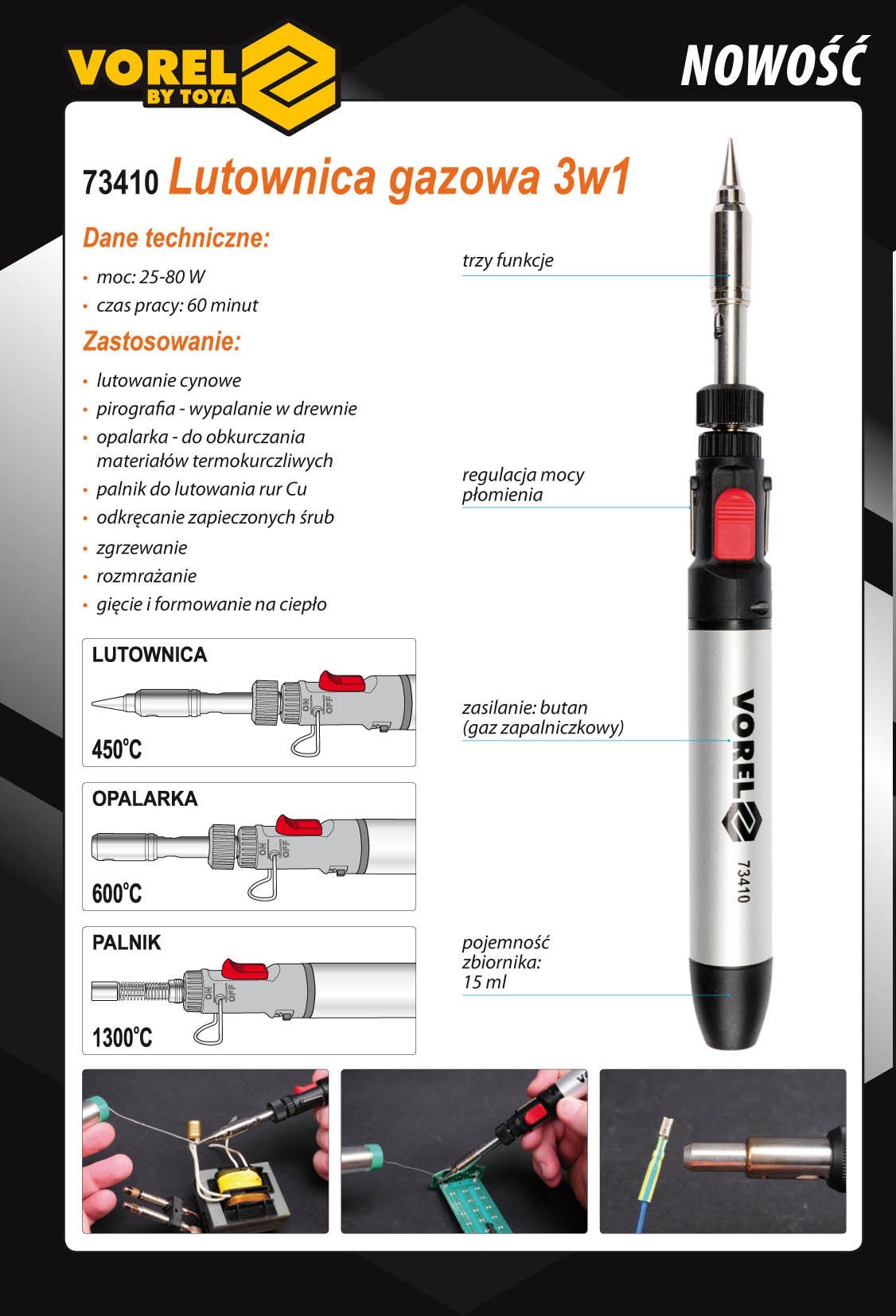 Паяльник газовый 3 в 1 (15мл) VOREL 73410