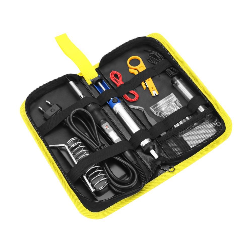 - Благодаря наличию самых популярных типов наконечников и и регулятора температуры на рукояти паяльник цифровой DEKO SI10 80Вт/220В в кейсе с набором аксессуаров отлично подойдет для выполнения различных паяльных работ.