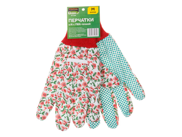 Технические характеристики: защитные свойства: минимальные риски; размер: 10; материал основы: синтетический трикотаж; материал покрытия: ПВХ точка; манжета: трикотажная; сфера применения: для использования в быту, в саде и огороде; --- Садовые перчатки STARTUL GARDEN станут незаменимыми для каждого, кто хочет сохранить красоту и здоровье своих рук во время работы в саду и огороде.