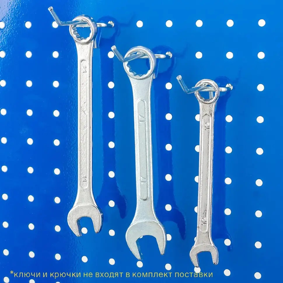 Панель выполнена из прочного металла с защитным покрытием, устойчивым к коррозии и механическим повреждениям. Может устанавливаться как отдельно на стену, так и в составе верстаков или модульных систем. Компактные размеры и универсальная перфорация делают её совместимой с большинством стандартных навесных аксессуаров.