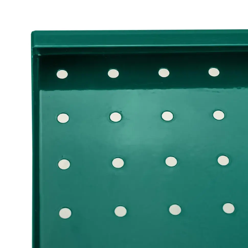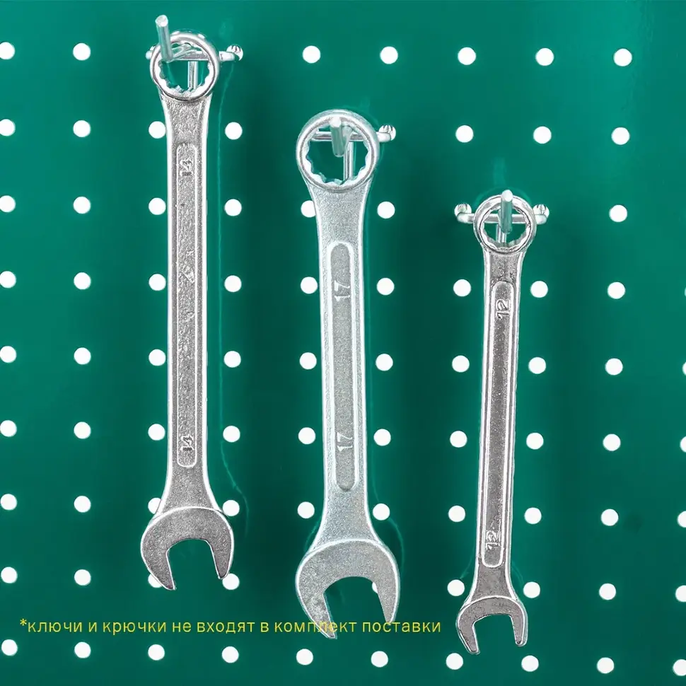 Изготовлена из прочного металла, устойчива к механическим повреждениям и рассчитана на длительную эксплуатацию. Перфорация выполнена с равномерным шагом, что позволяет гибко размещать крючки, держатели и полки под конкретные задачи.