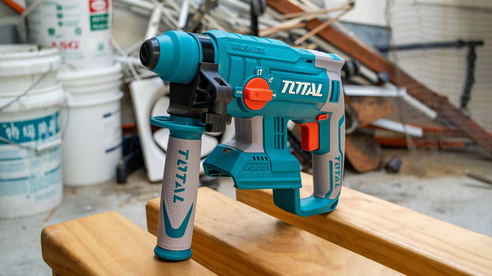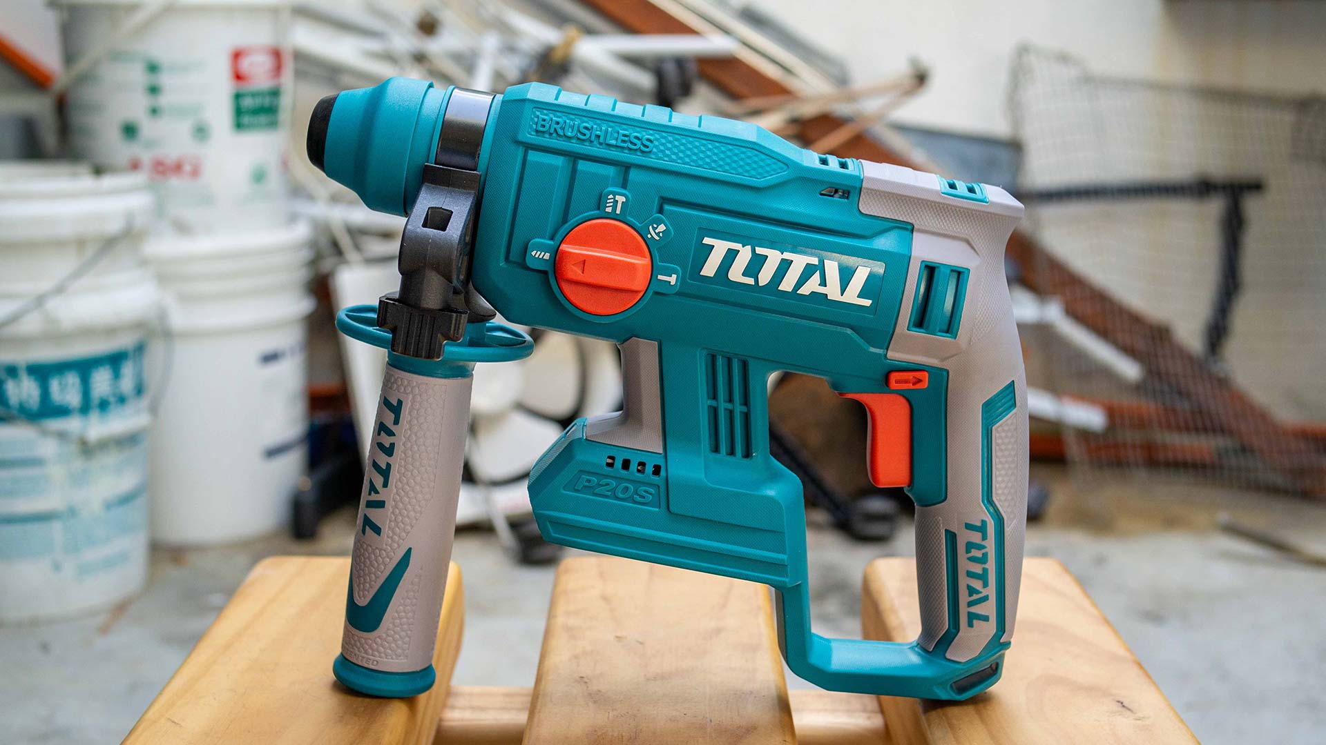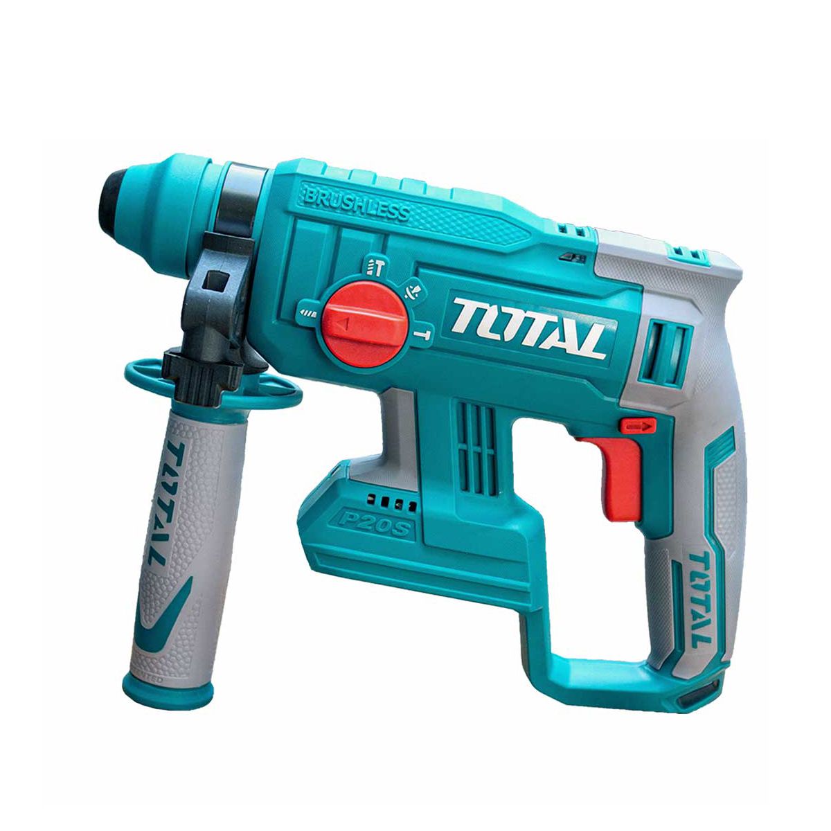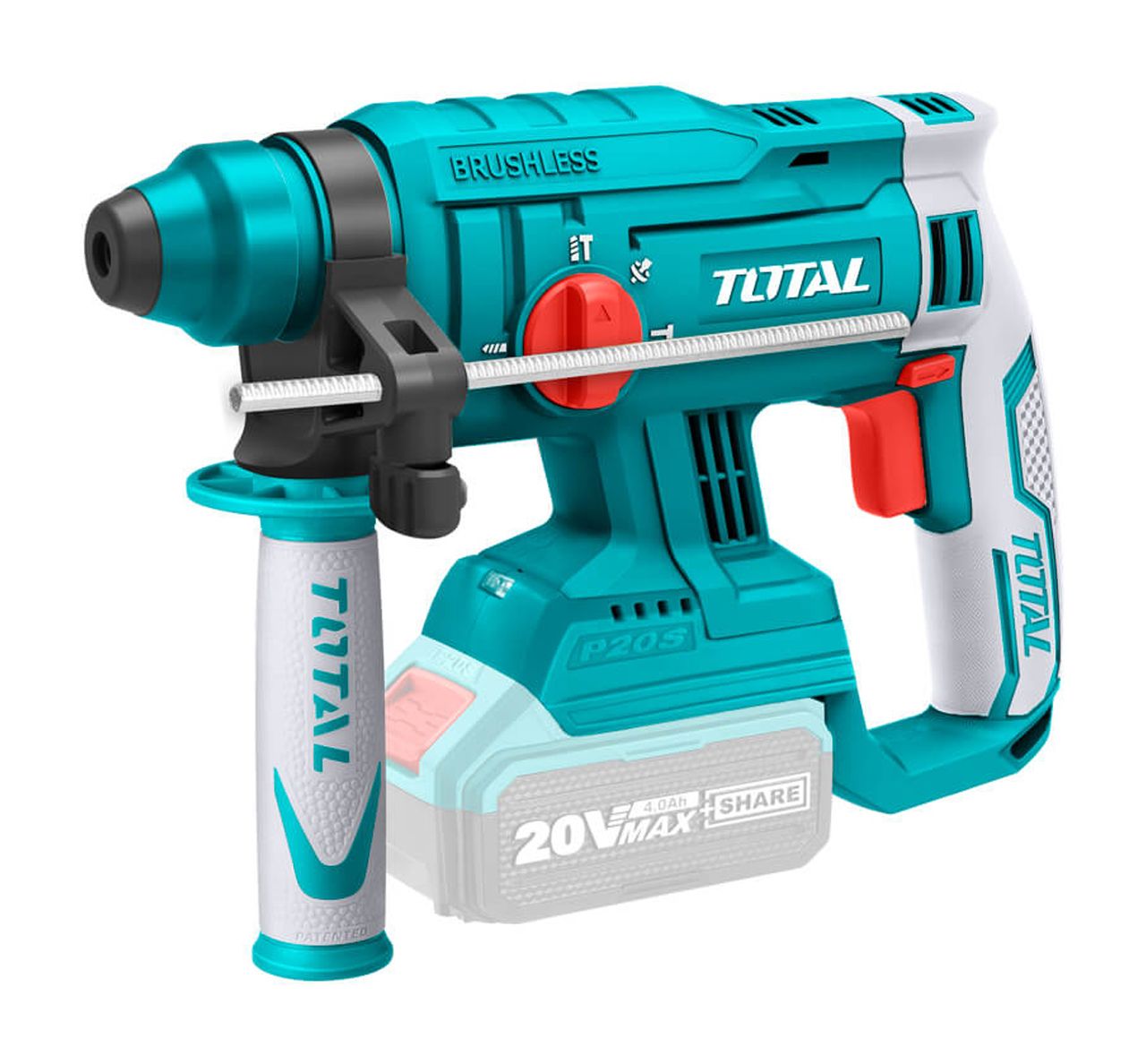 - Перфоратор входит в линейку инструментов TOTAL P20S и совместим со всеми аккумуляторами TOTAL 20В - TFBLI20011, TFBLI2002, TFBLI2053.