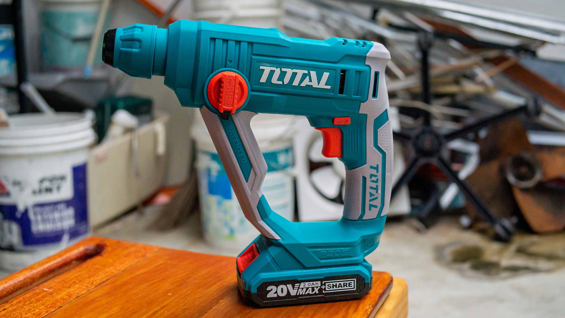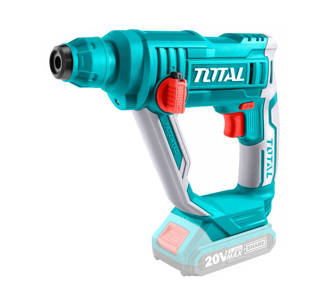 - Перфоратор входит в линейку инструментов TOTAL P20S и совместим со всеми аккумуляторами TOTAL 20В - TFBLI20011, TFBLI2002, TFBLI2053.