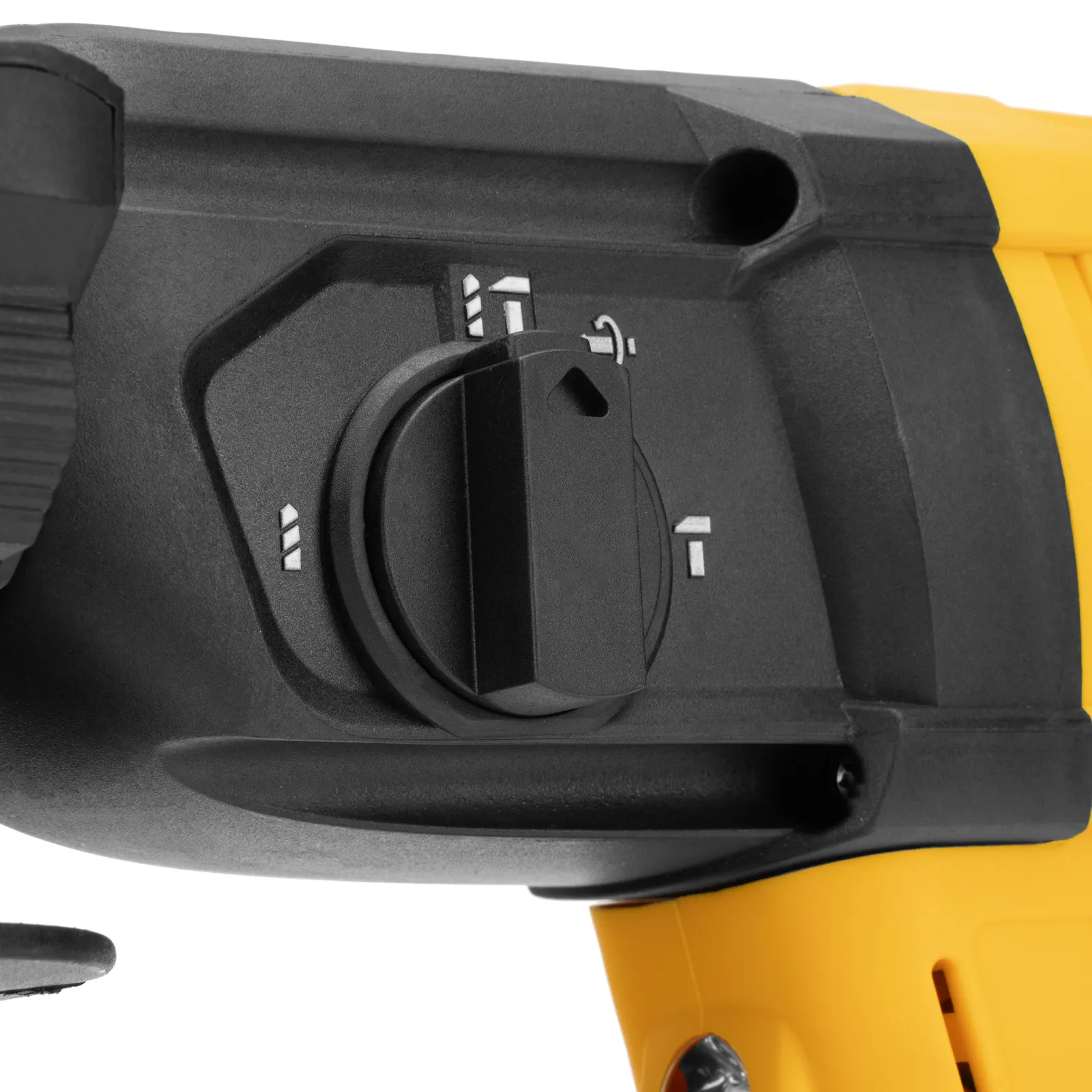 Максимальный диаметр отверстий в древесине составляет 40 мм, металле — 13 мм, бетоне — 28 мм. Можно выбрать один из трех режимов работы: долбление, сверление и сверление с ударом. Угловое положение долота регулируется для наиболее эффективной работы.