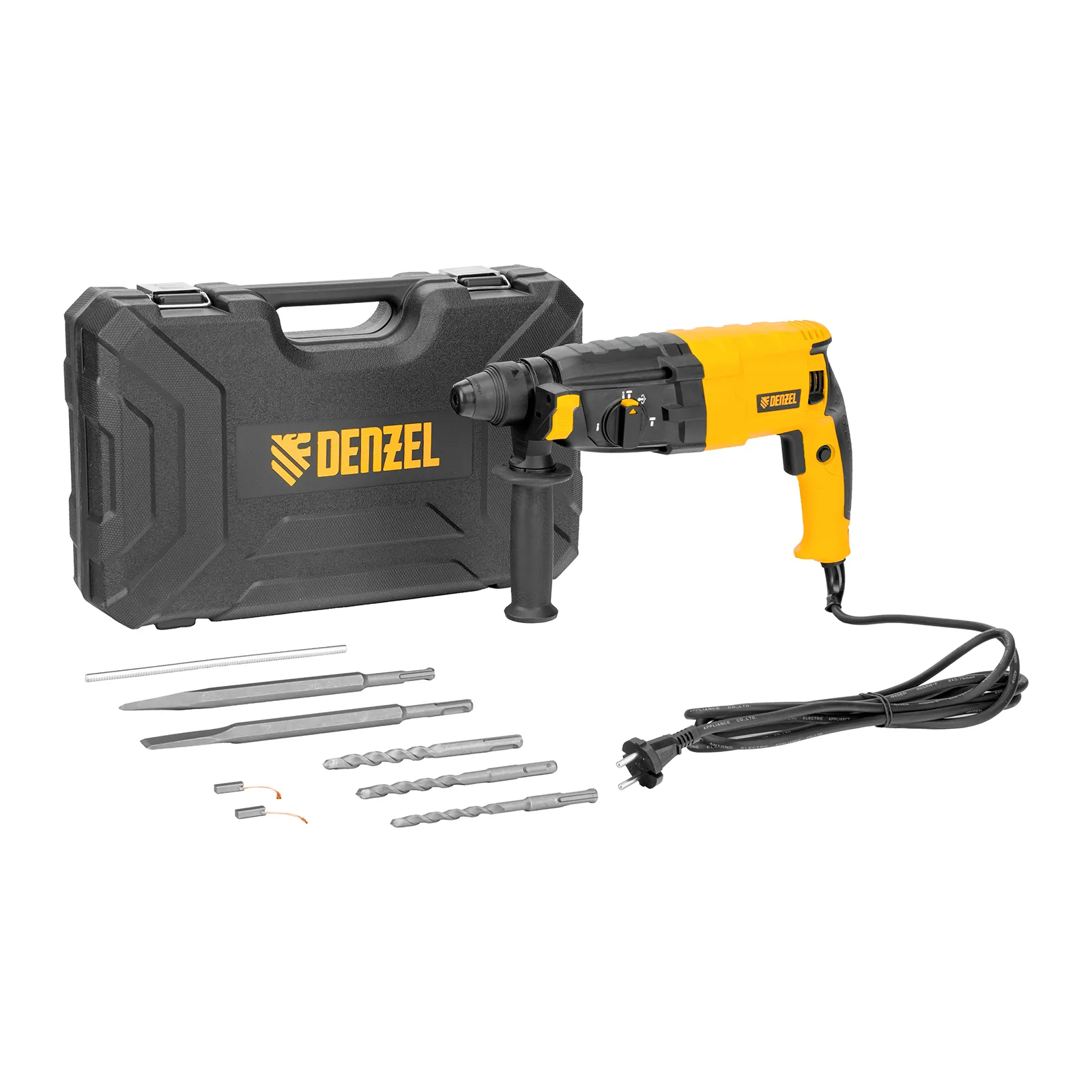 - Набор оснастки в комплекте – 3 бура, долото и пика.