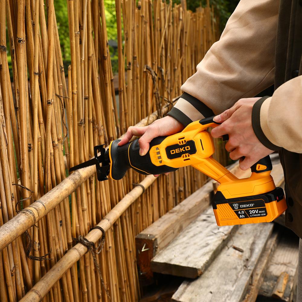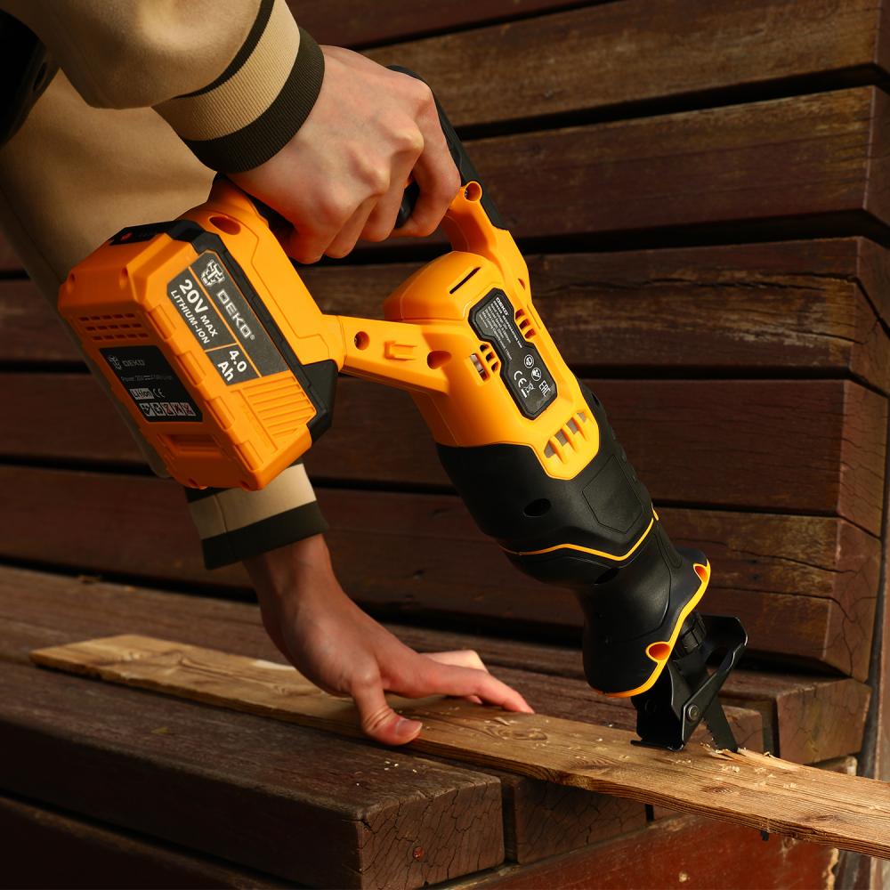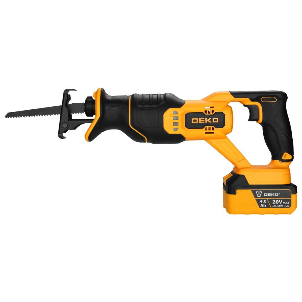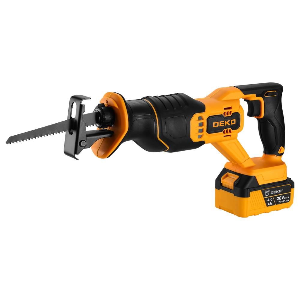 - Сабельная пила аккумуляторная DEKO DKRS20, 20В, 2х4.0Ач предназначена для распила древесины, металла и прочих строительных материалов.