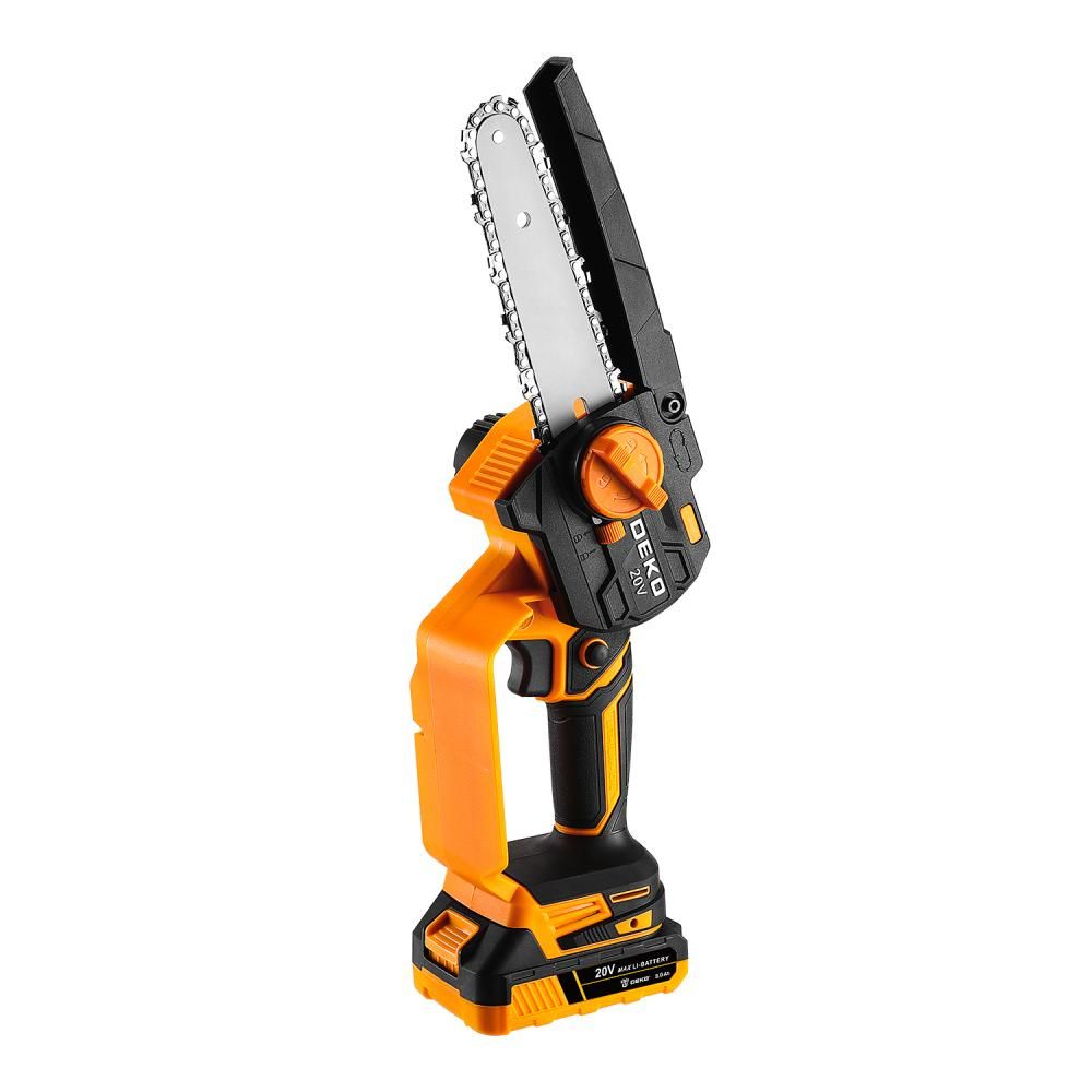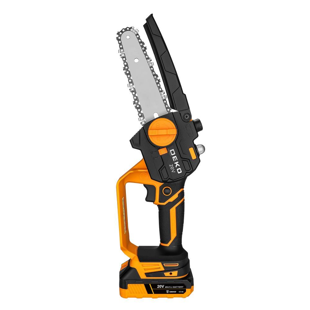 - Пила цепная аккумуляторная DEKO DKCHS 20-6, 20В, 1x3.0Ач незаменима при работе в мастерской или в саду для распиливания различных материалов.