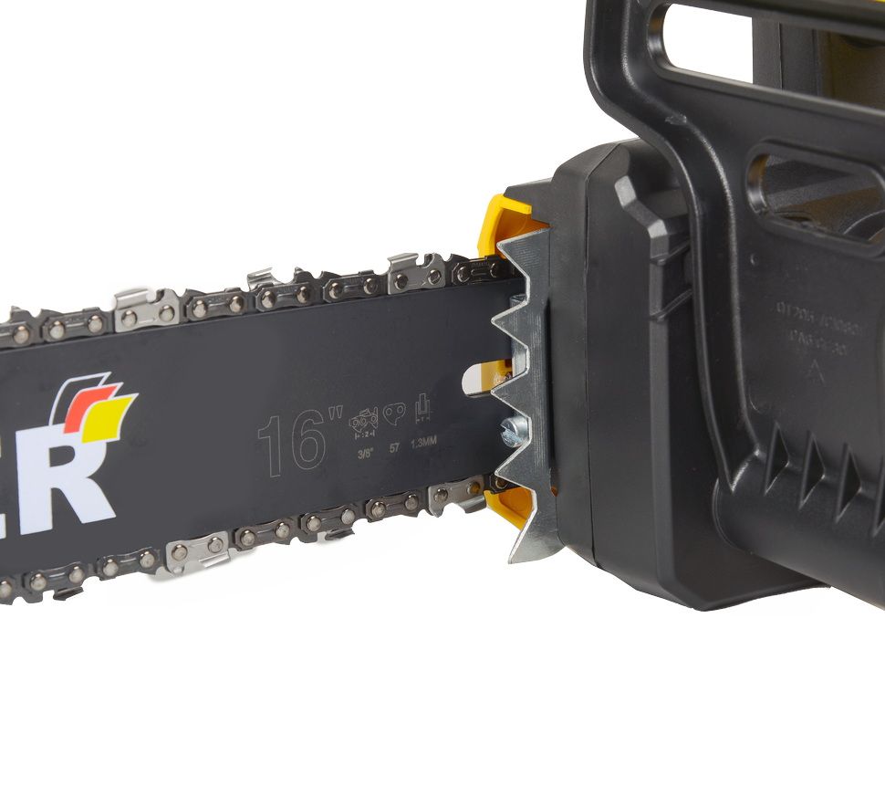 - Шина длиной в 400 мм, хорошо справляется с распиловкой бруса и обрезкой веток.