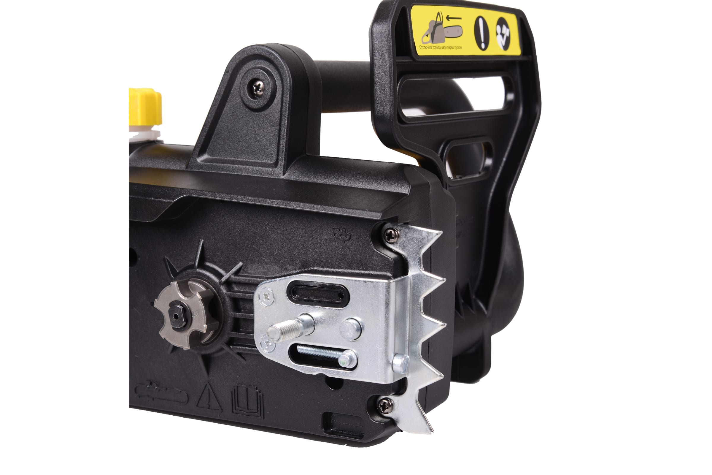 - Безопасность. Автоматический тормоз цепи в виде щитка обеспечивает безопасность работы с электропилой, в первую очередь, защиту ваших рук.