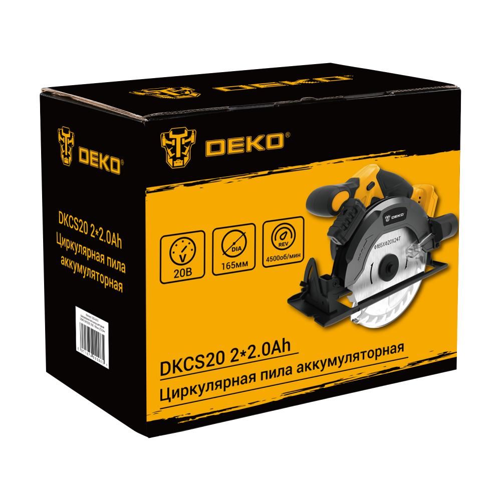 Пила циркулярная аккумуляторная, 20В,2 АКБ 2,0 А/ч, 165мм, 4300 об/м, DEKO DKCS20 Laser SET 2