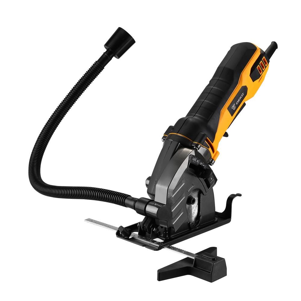 - Глубину пропила можно настраивать с помощью шкалы на корпусе пилы.