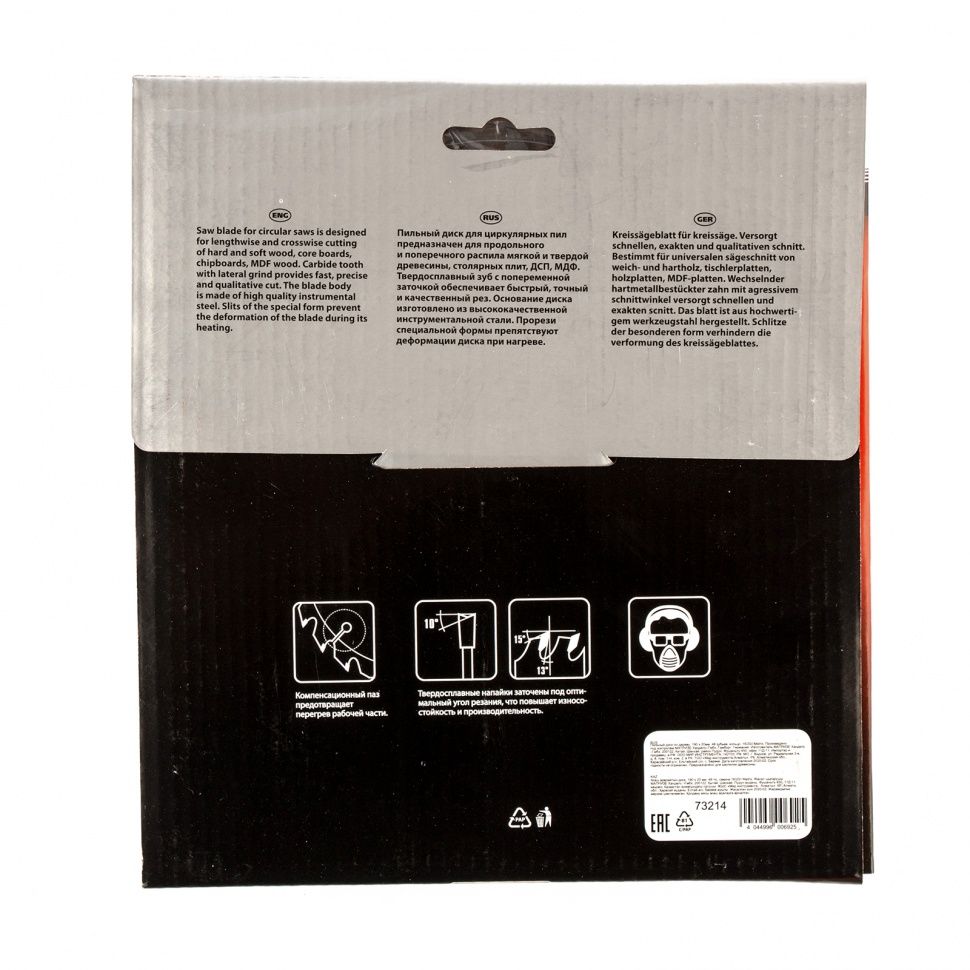 Мелкие зубья с попеременной заточкой обеспечивают точность, качество реза и получение чистых кромок, диск подходит для бытового и профессионального применения.