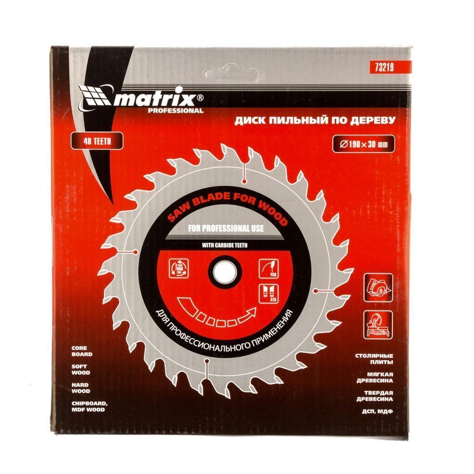 Пильный диск по дереву, ф190 х 30 мм, 48 зубьев Matrix 73219