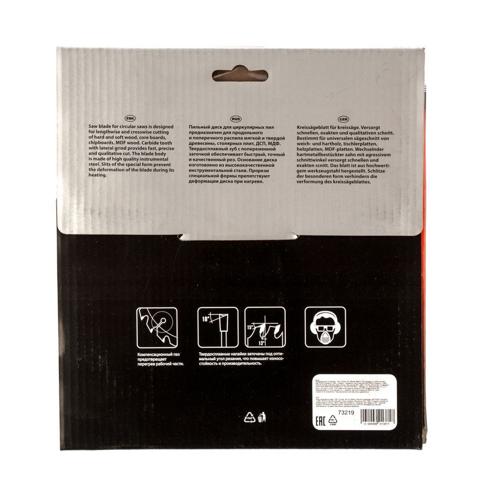 Мелкие зубья с попеременной заточкой обеспечивают точность, качество реза и получение чистых кромок, диск подходит для бытового и профессионального применения.