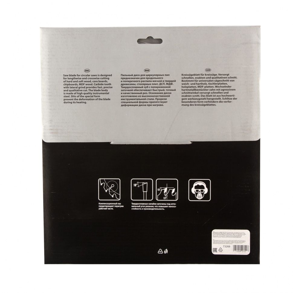 Мелкие зубья с попеременной заточкой обеспечивают точность, качество реза и получение чистых кромок, диск подходит для бытового и профессионального применения.