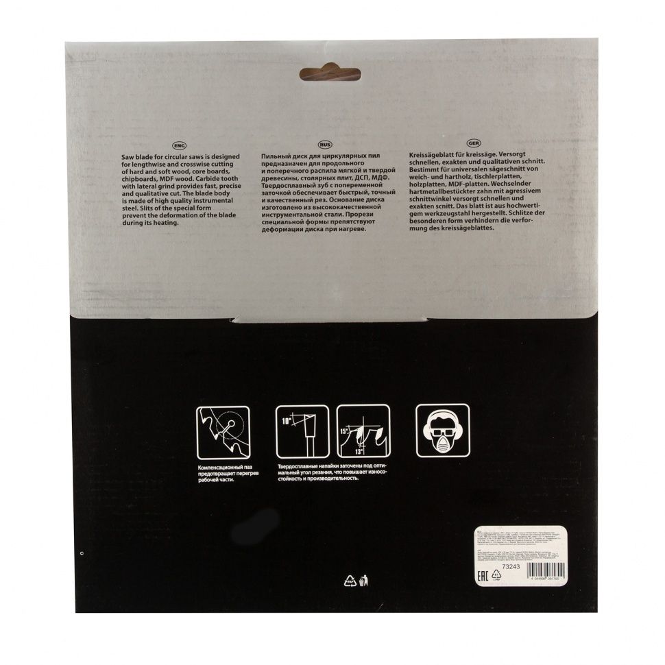 Мелкие зубья с попеременной заточкой обеспечивают точность, качество реза и получение чистых кромок, диск подходит для бытового и профессионального применения.